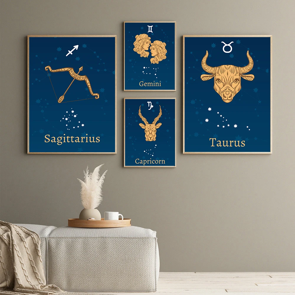 Абстрактные постеры знаков зодиака в стиле бохо, печать женских лин...