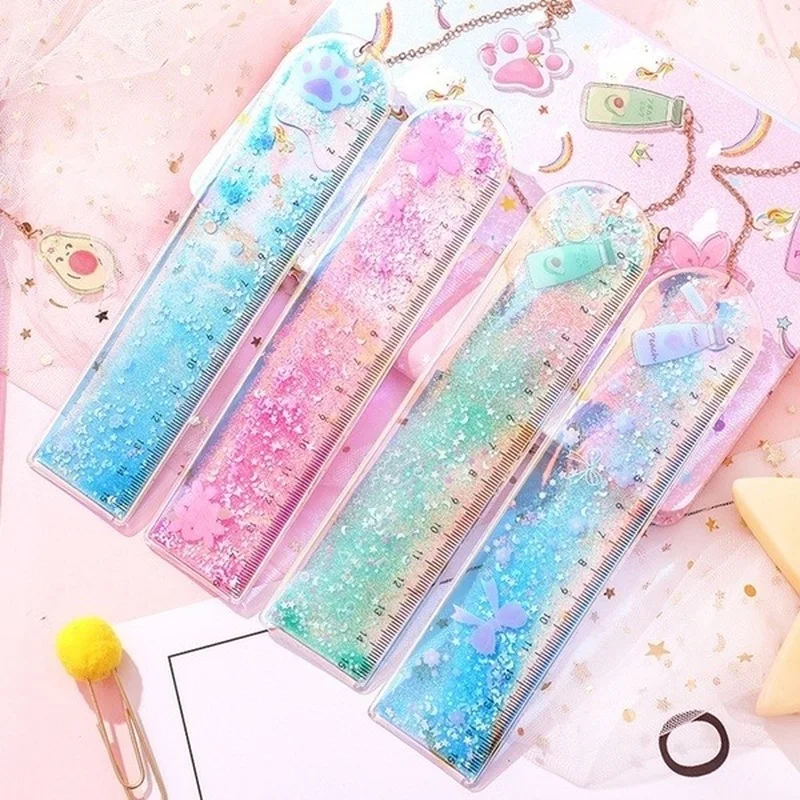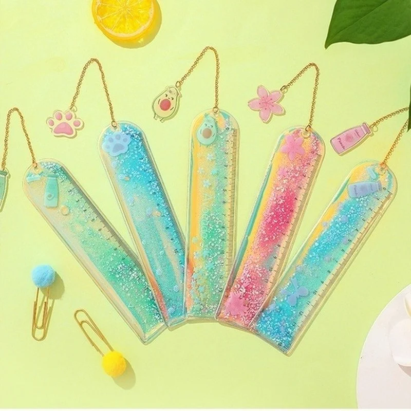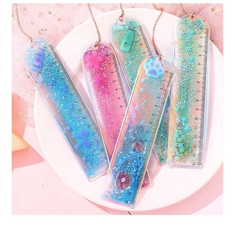 1 шт. Линейка-Закладка с сыпучим песком, милая Лазерная линейка для девочек, креативная многофункциональная весы для студентов и канцелярских принадлежностей