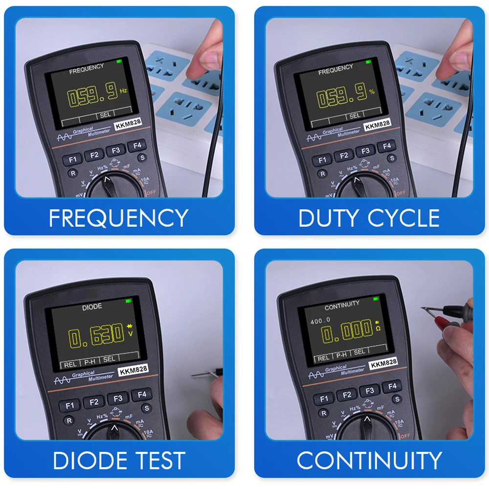 KKmoon kkm828 высокочеткий Интеллектуальный Графический Цифровой осциллограф мультиметр 2 в 1 цветной экран 2,4 дюйма полоса пропускания 1 МГц