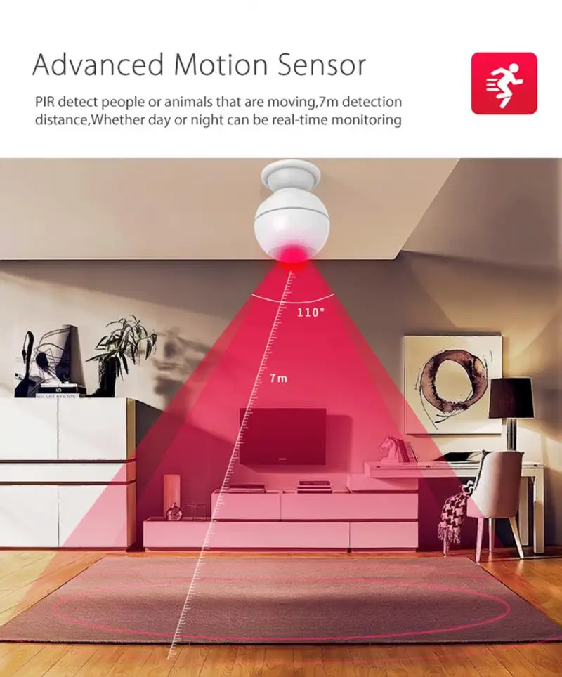 Расширенный датчик движения: PIR обнаруживает людей или животных, которые движутся, расстояние обнаружения 7 м, будь то день или ночь, может быть мониторинг в реальном времени