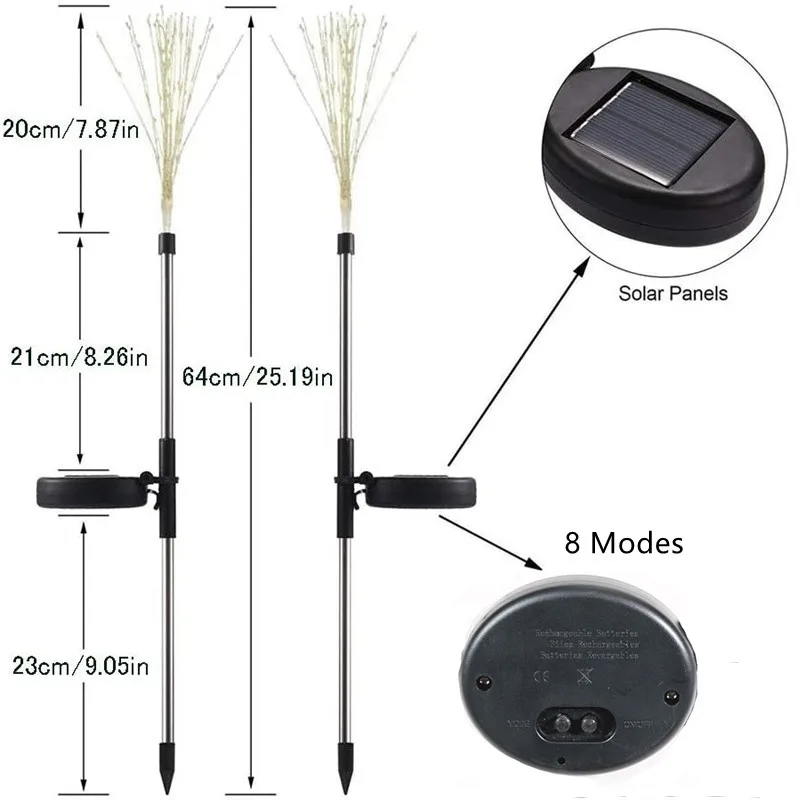 Солнечный фейерверсветильник 8 режимов, водонепроницаемый