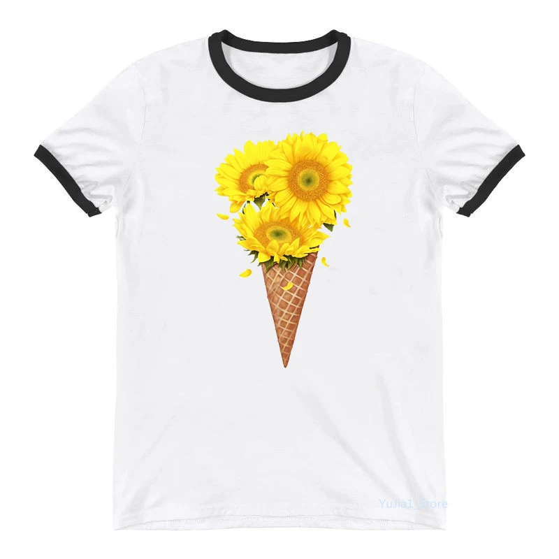 Футболка женская с забавным графическим принтом, топ с цветочным пр...
