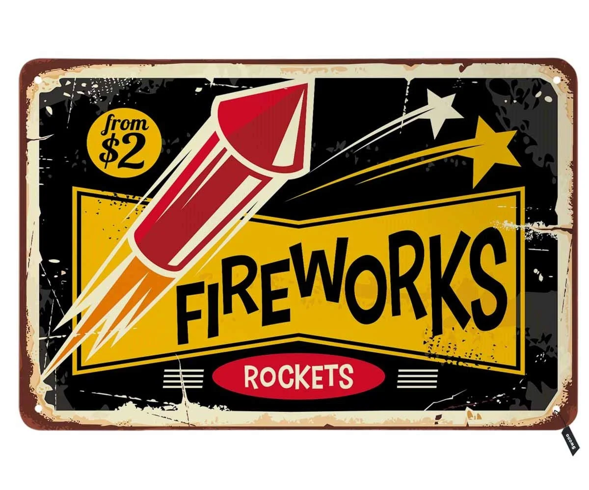 Оловянные знаки с фейерверками, винтажные металлические жестяные зн...