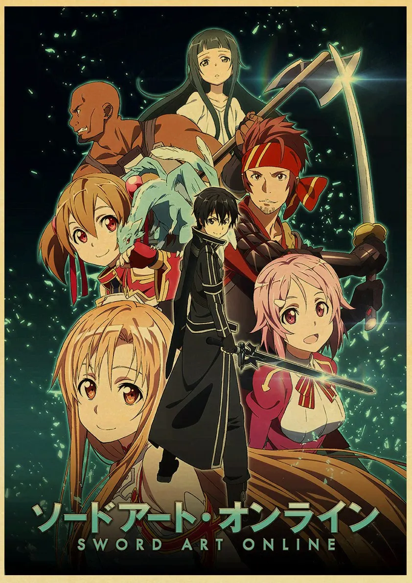 Sword Art Online Vintage Стикеры из крафтовой бумаги популярное японское аниме постер, применяется для бара, домашнее искусство, стены, DIY, декоративные детские подарки