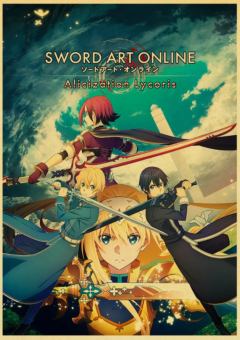 Винтажный Японский аниме меч искусство онлайн ретро постер крафт-бу...