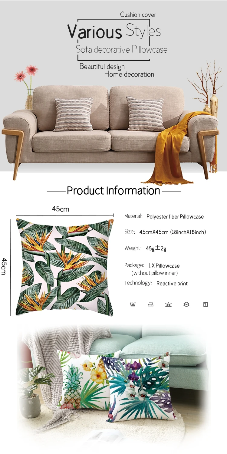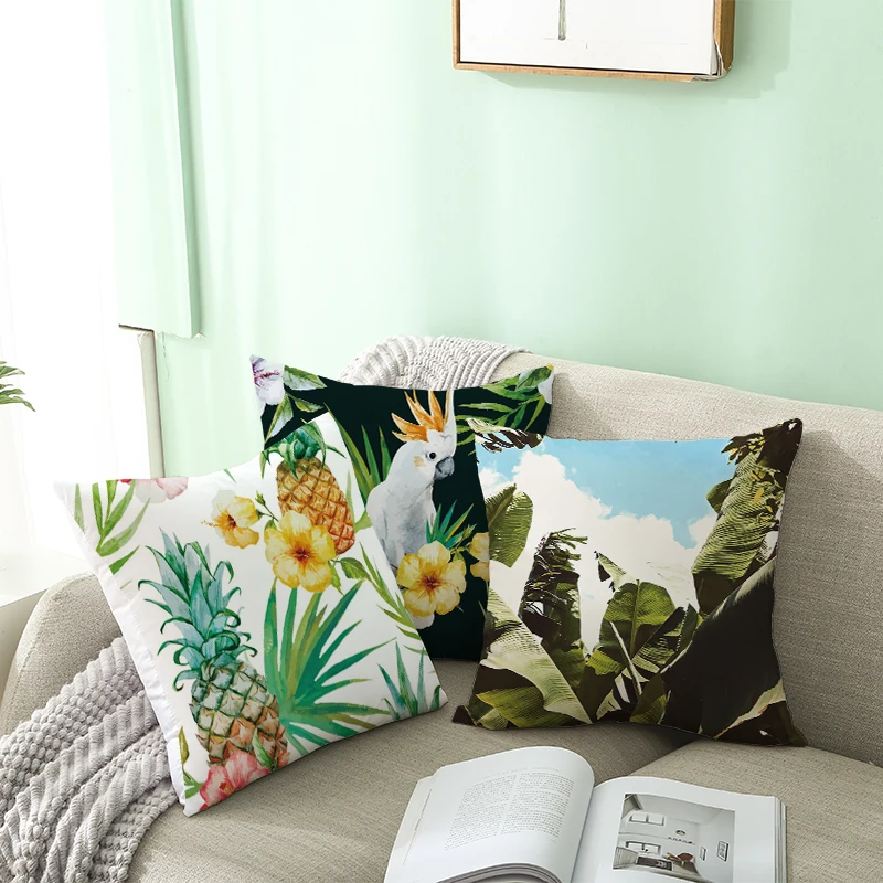 45x45 см льняная Подушка с растительным рисунком, чехол, гавайская Подушка, домашний декор, наволочка, замшевая ткань, чехол