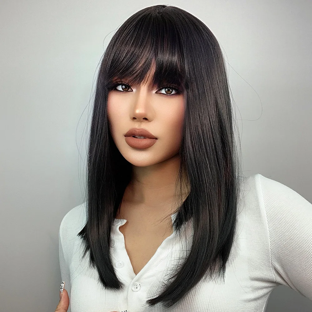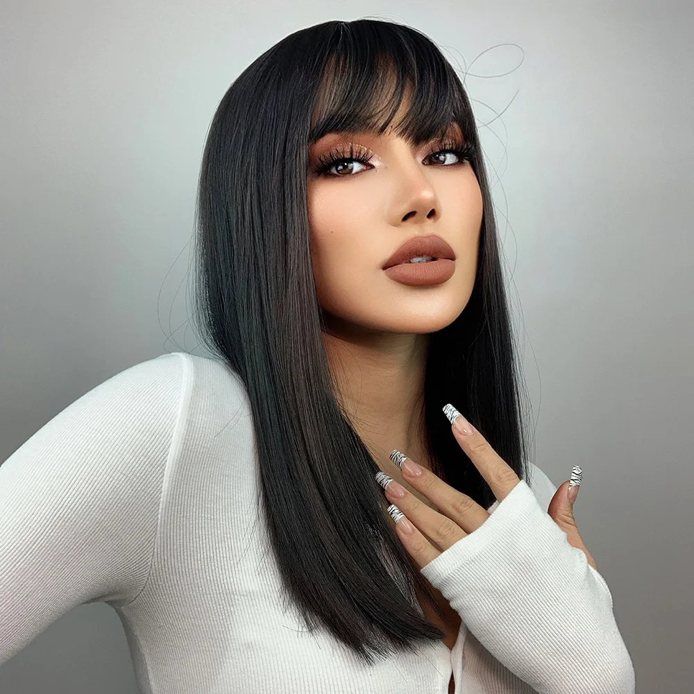 GEMMA натуральный черный Средний прямой боб синтетический парик волосы Косплей Вечеринка Лолита женские парики с челкой термостойкие волокна
