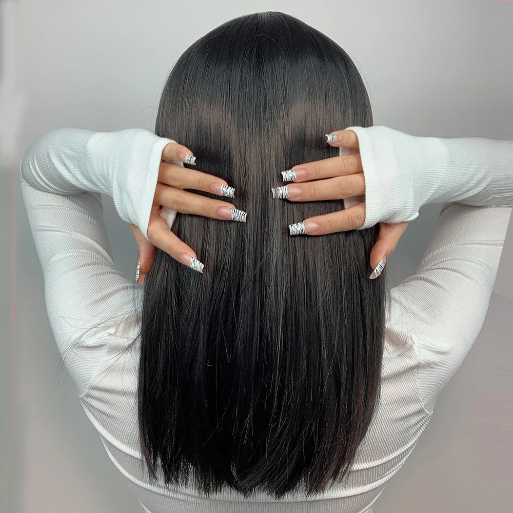 Женский парик с челкой GEMMA, черный, средний, прямой, синтетический, вечерние, для косплея, Лолита
