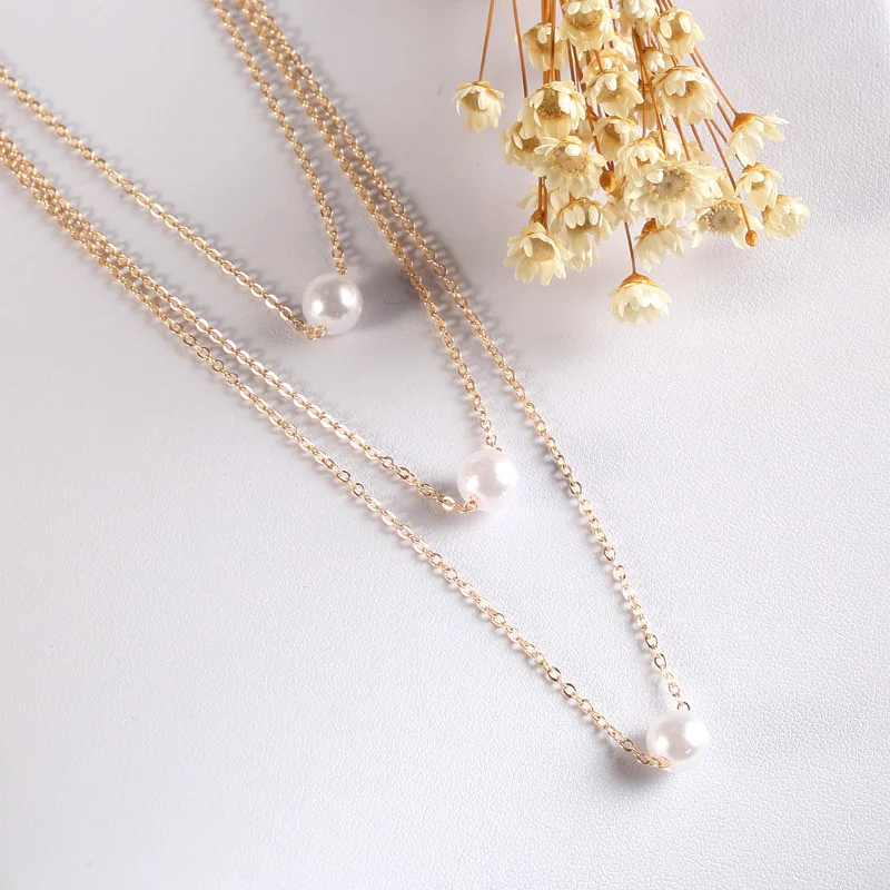 Женская цепочка с бусинами, классическое ожерелье из искусственного...