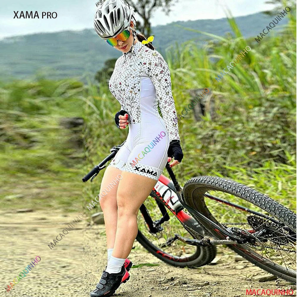 2022 XAMA Pro велосипедист комбинезон для фитнеса женская одежда Велоспорт Джерси в акции с длинным рукавом обезьяна белый спортивный комплект