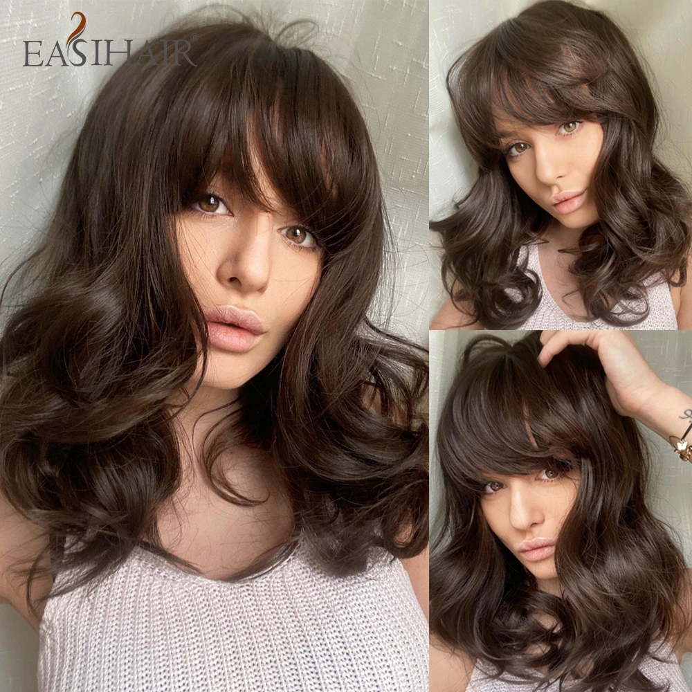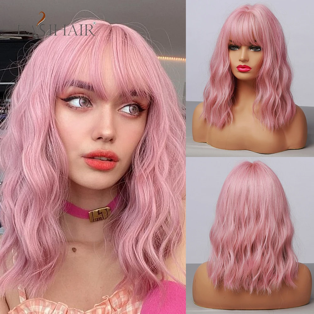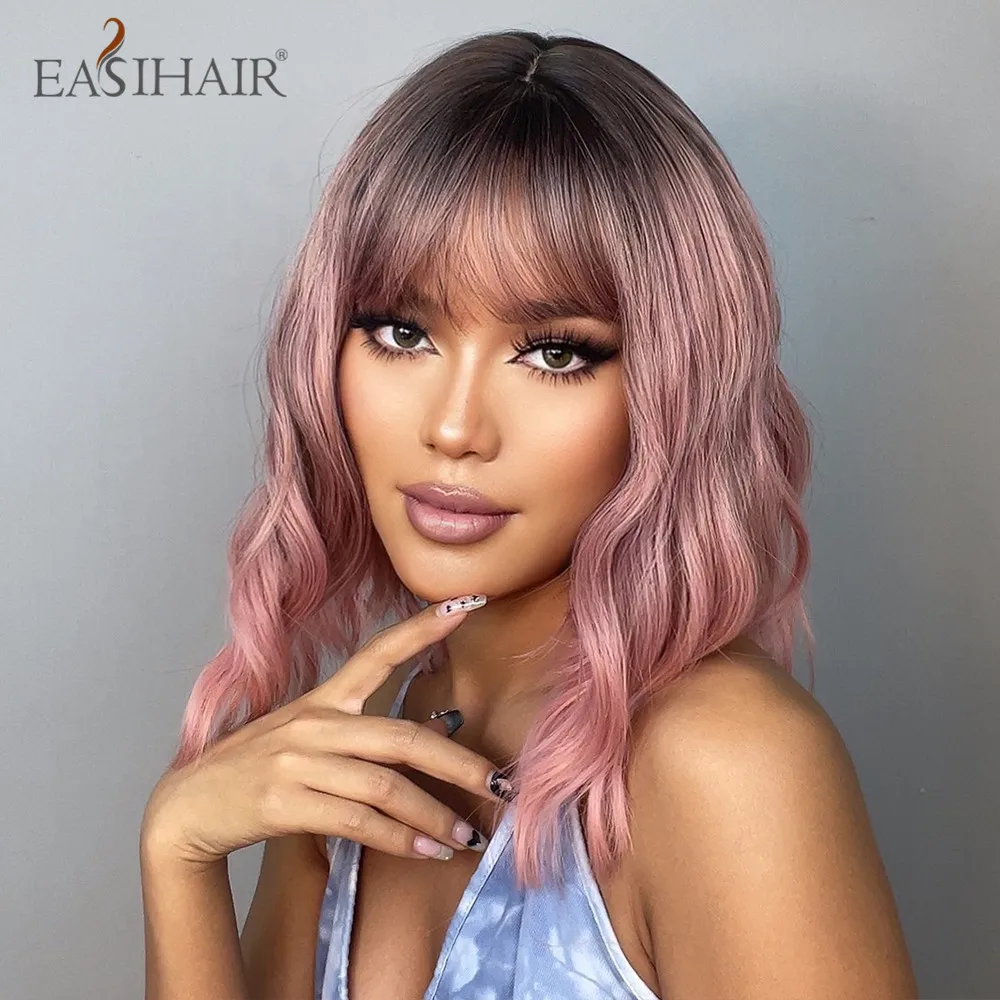 EASIHAIR Боб Омбре розовые волнистые парики с челкой натуральные синтетические вьющиеся волосы для женщин термостойкие повседневные Косплей Лолита Парики