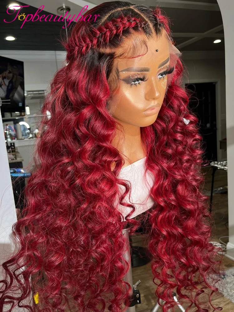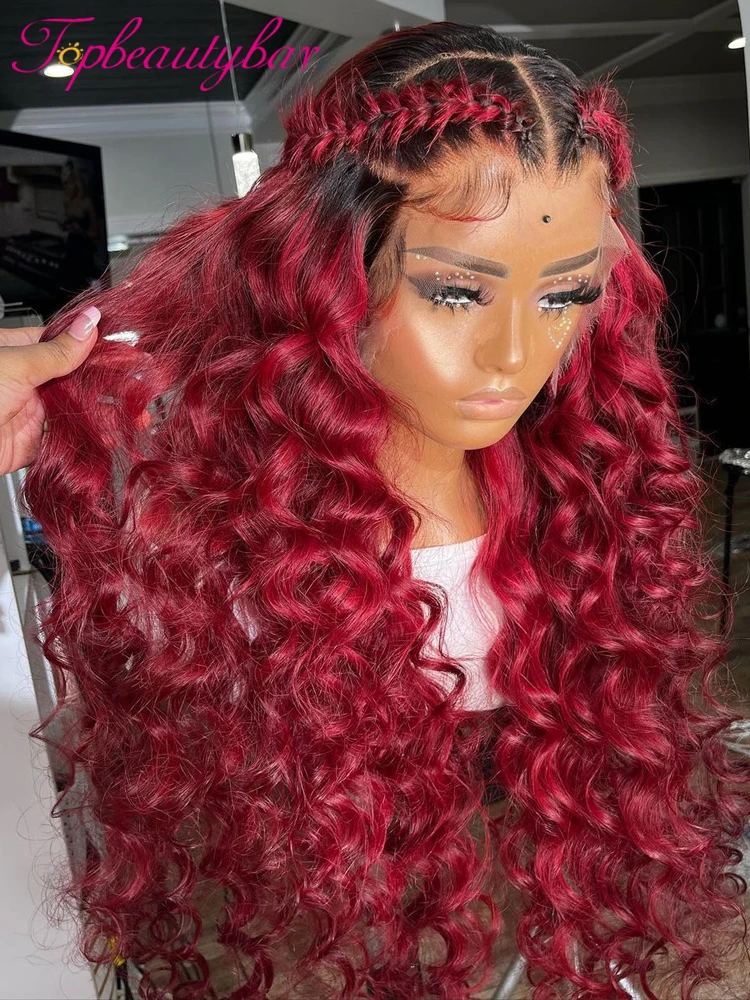 Перуанские человеческие волосы на сетке 13X 4, парики с эффектом омбре красного цвета, предварительно выщипанные 180% натуральные волосы Remy, волнистые парики с глубокой частью