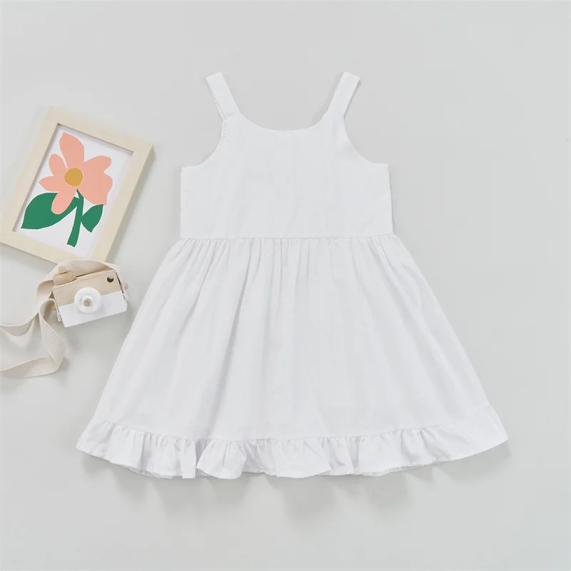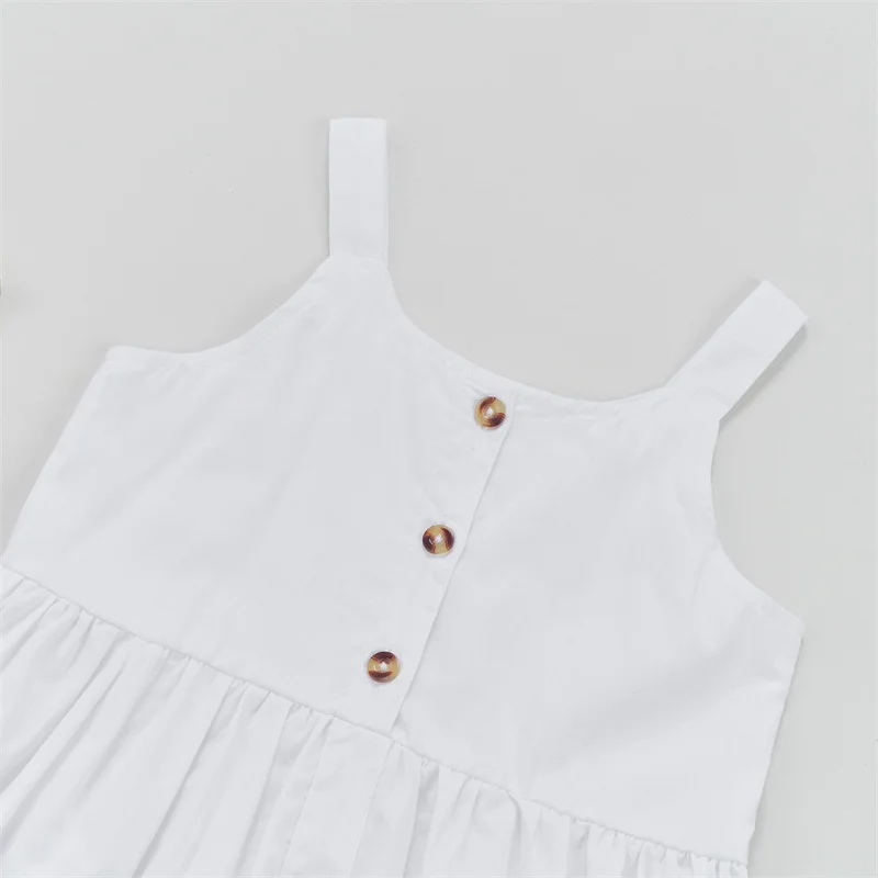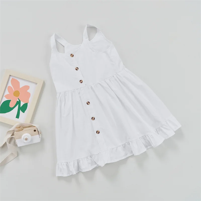 Летнее Повседневное платье для девочек, модное однотонное платье-трапеция без рукавов на пуговицах, с рюшами, для детей от 18 месяцев до 6 лет, белого цвета