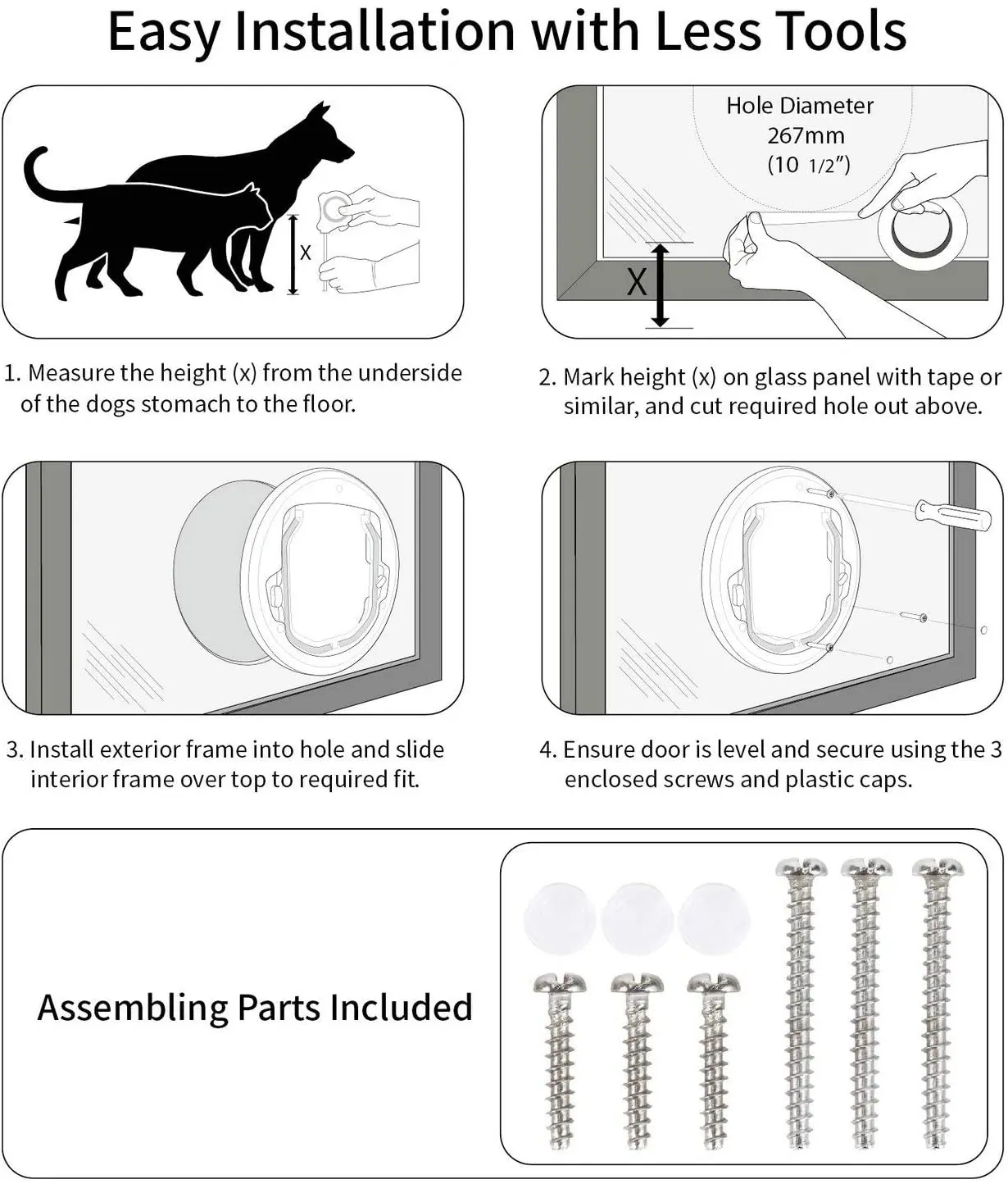 【Легкость Install】Our маленькая собака дверь подходит для большинства дверей до 1,2 '', за исключением закаленное стекло, обратите внимание на то, что в виде котов двери способ установки, вам нужно всего лишь несколько инструментов для того, чтобы завершить установку.