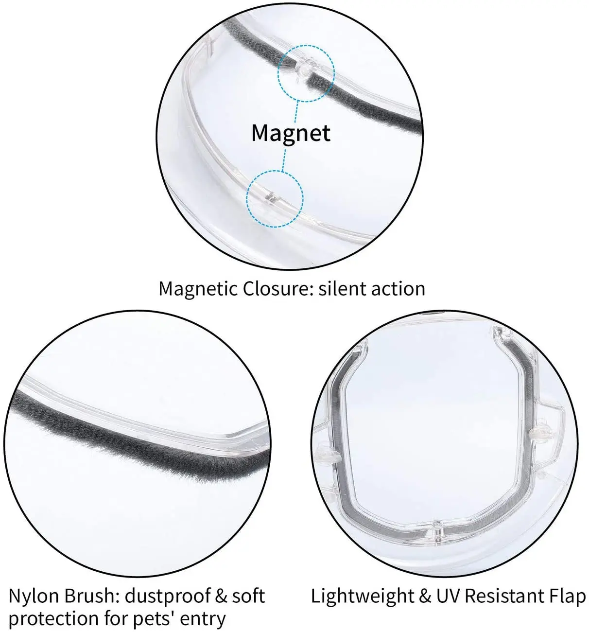 【Прочный материал и устойчивый к ультрафиолетовому излучению дизайн 】прочный клапан внутренней кошачьей двери изготовлен из высококачественного АБС-пластика. Наша оконная дверь ПЭТ может эффективно отражать ультрафиолетовые лучи и поддерживать температуру в помещении.