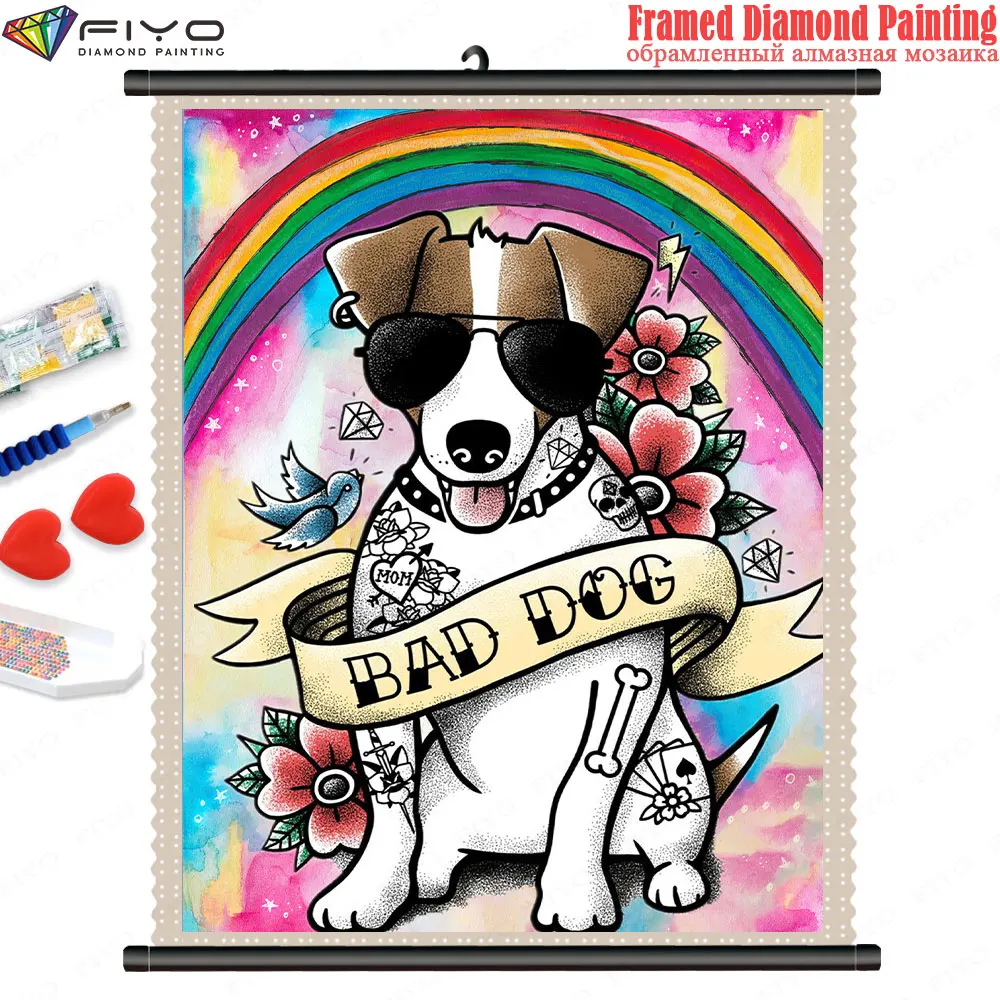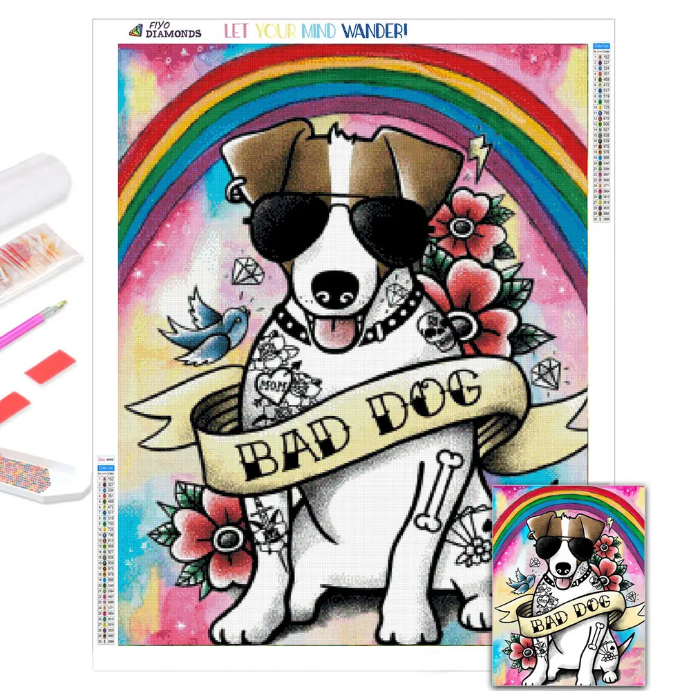 Алмазная живопись 5D сделай сам, радужная Плохая Собака, полная Алмазная мозаика, вышивка с рамкой, наборы для вышивки крестиком, домашний декор