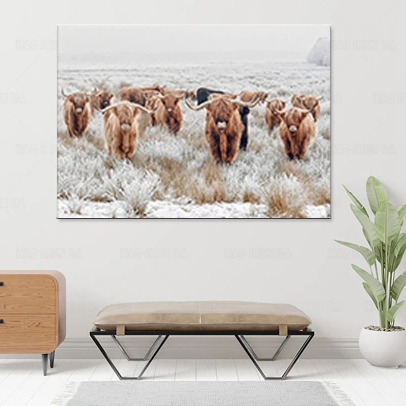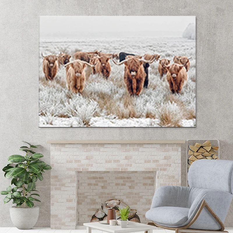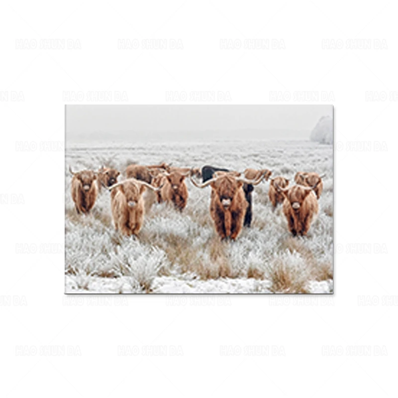 Highland корова стадо настенное искусство холст картины животные зимний фермерский цифровой постеры природное искусство картина домашний декор