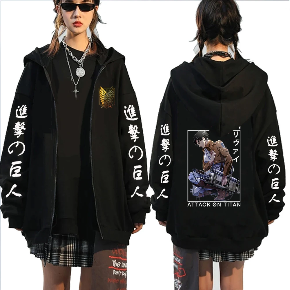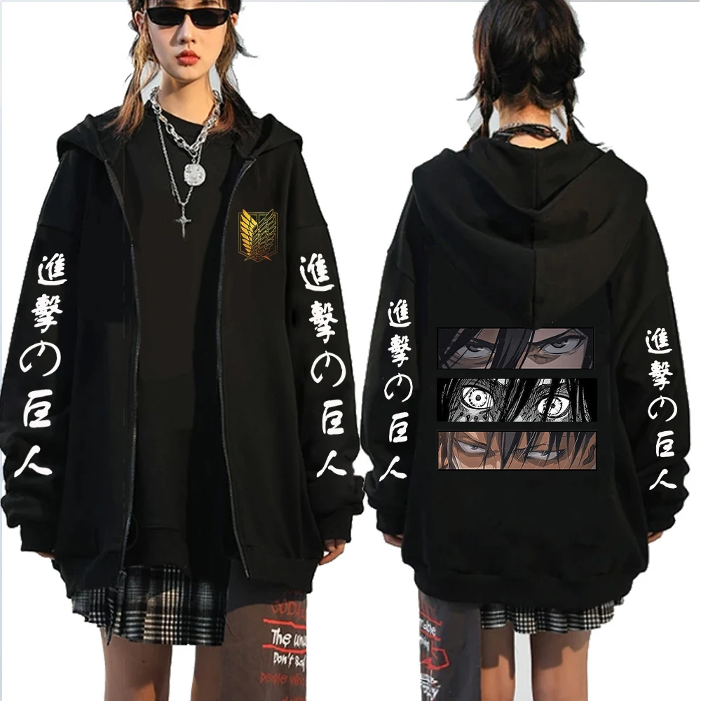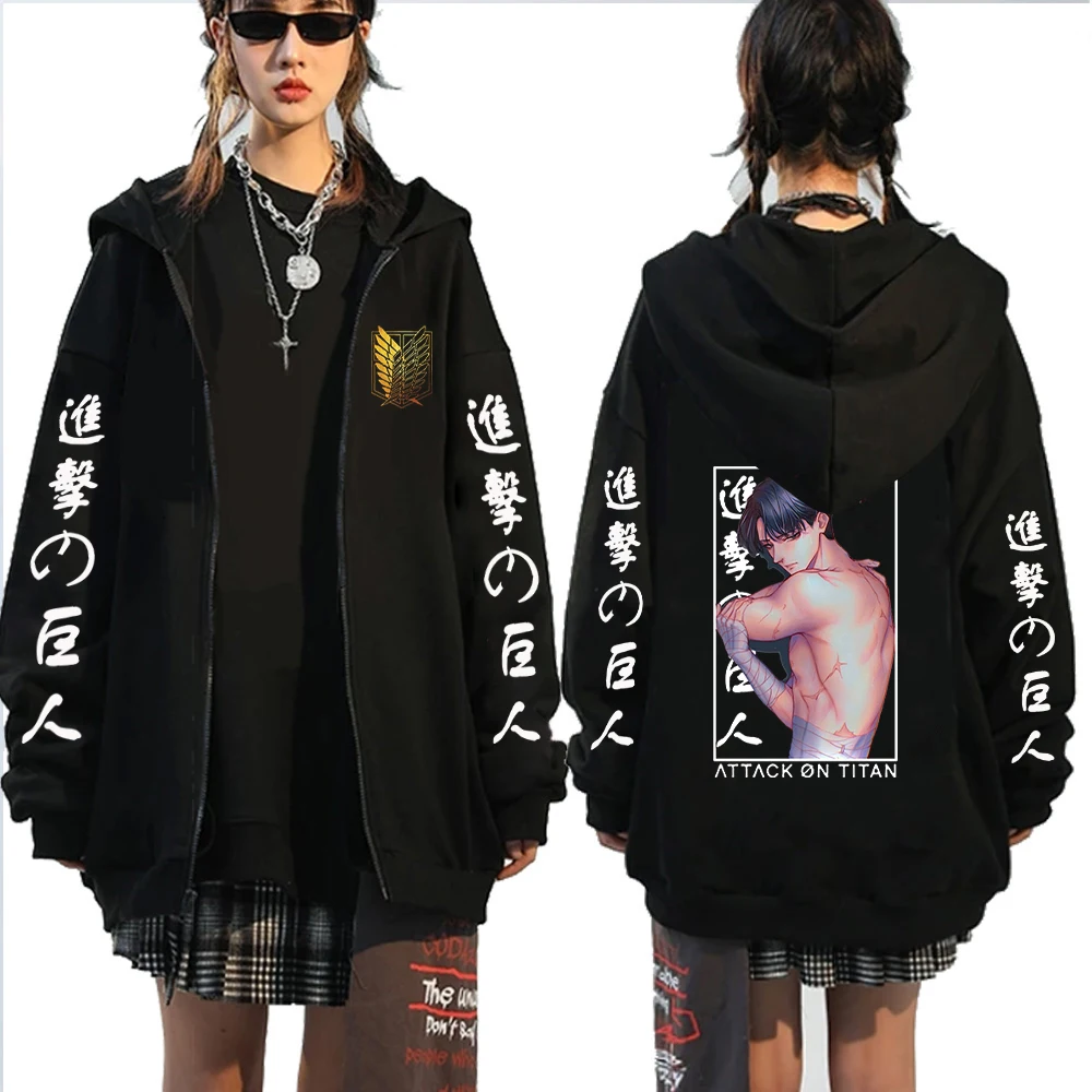 Толстовка в стиле Харадзюку для женщин и мужчин, худи с рисунком из японского аниме атака на Титанов, куртка на молнии, пальто