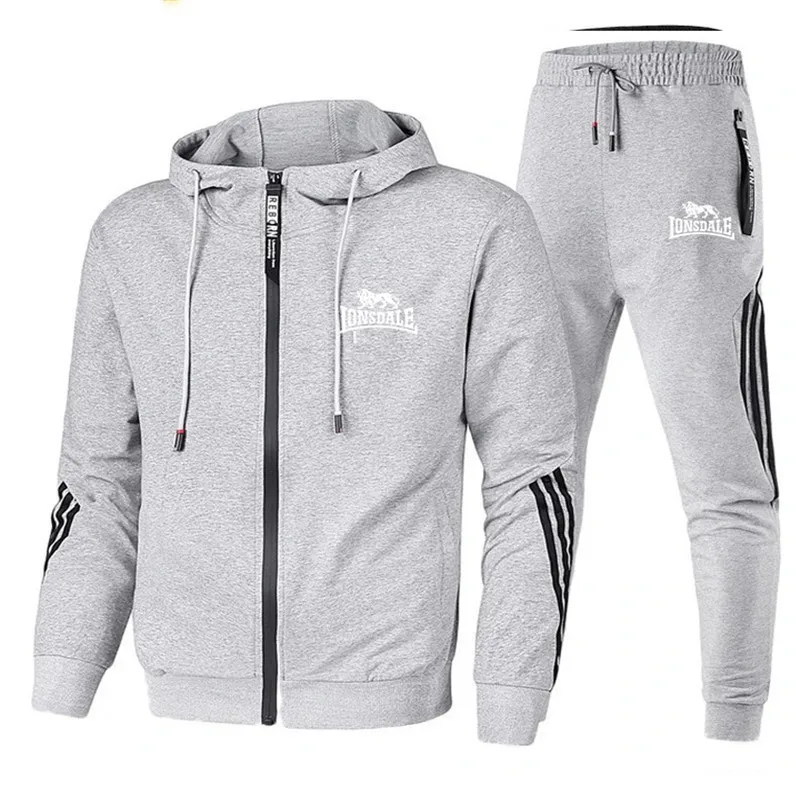 Мужская модная Толстовка и спортивные брюки Lonsdale из 2 предметов, куртка на молнии, свитшот, мужская повседневная толстовка, одежда, размер 2022