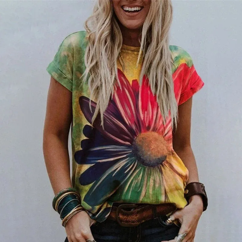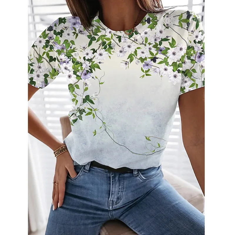 Женская летняя футболка большого размера, топы с высокой улицей, модная женская футболка с коротким рукавом и цветочным принтом, женские майки с цветочным принтом