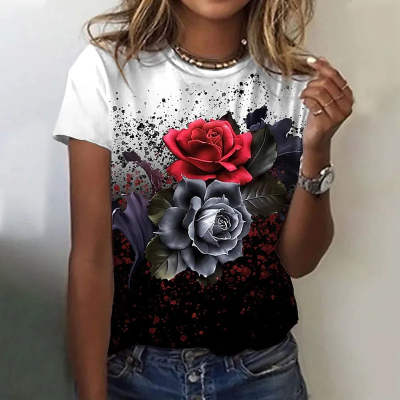 Женская футболка с коротким рукавом, рубашка с 3D цветочным принтом...