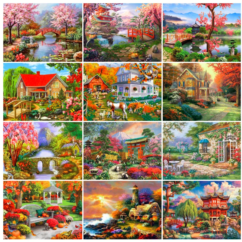 Алмазная живопись 5D "сделай сам", пейзаж весны, дом и река, полная вышивка, мозаика, наборы для вышивки крестиком, искусство, домашний декор