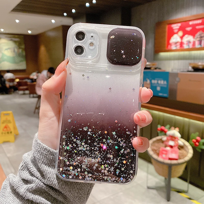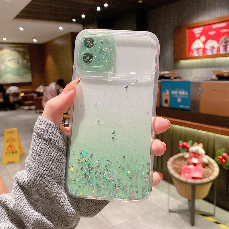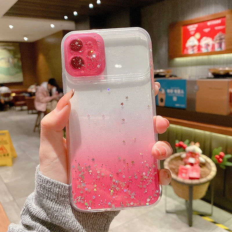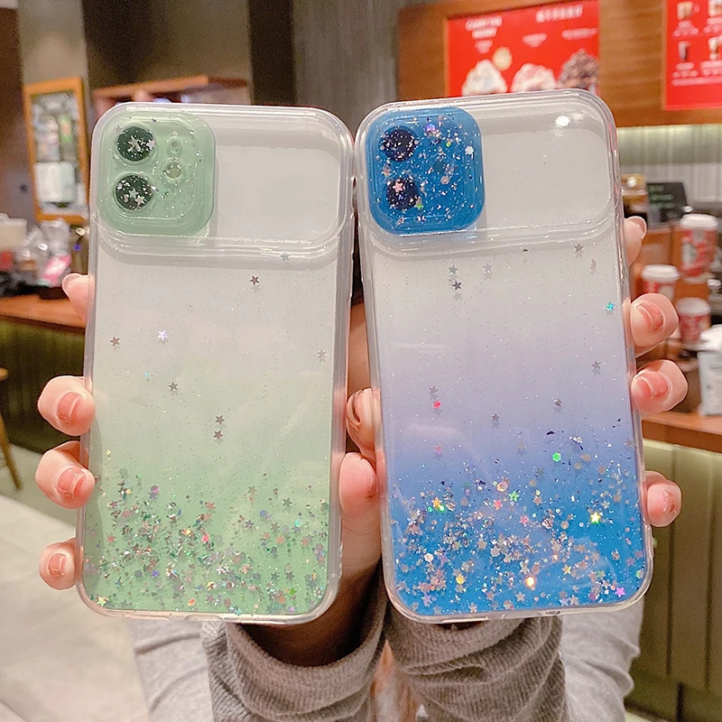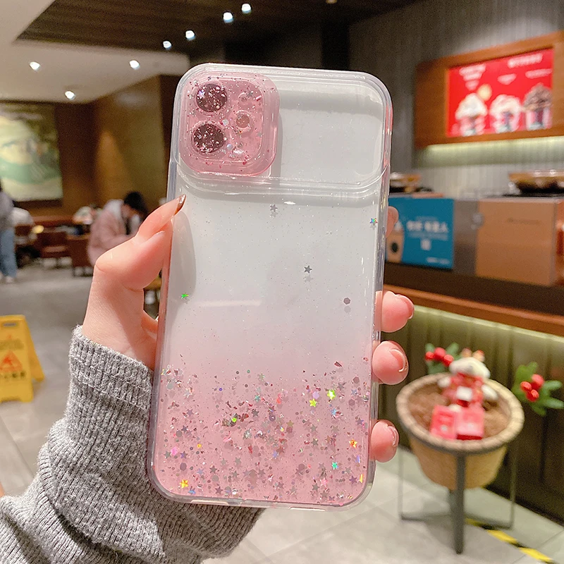 Прозрачный мягкий чехол с градиентом и блестками для защиты камеры,...