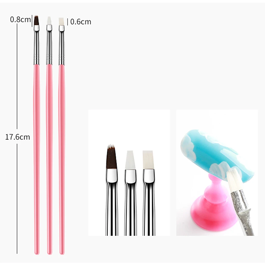 2) ОписаниеМатериал: пластик.Размер: 18 см.Цвет: розовый.В комплект входит: 3 * плоская кисть для ногтей. 3) Спецификация:Материал: прозрачный пластик + кисть.Цвет: как на фотографии.Размер: 16,6 см, 16,4 см, 16,2 см.В комплект входит: 3х маникюрные карандаши-подводки.