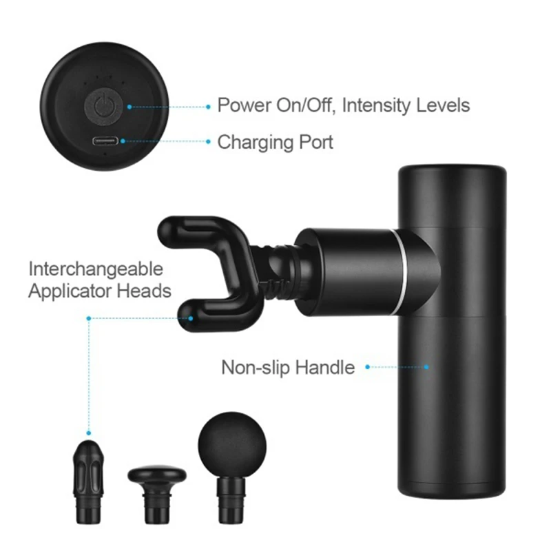 Мини-массажный пистолет можно заряжать с любых USB-C устройств, таких как внешний аккумулятор, ноутбук, адаптер type c и т. д. всего 3-4 часа зарядки, больше не беспокойтесь об изменении батарей!