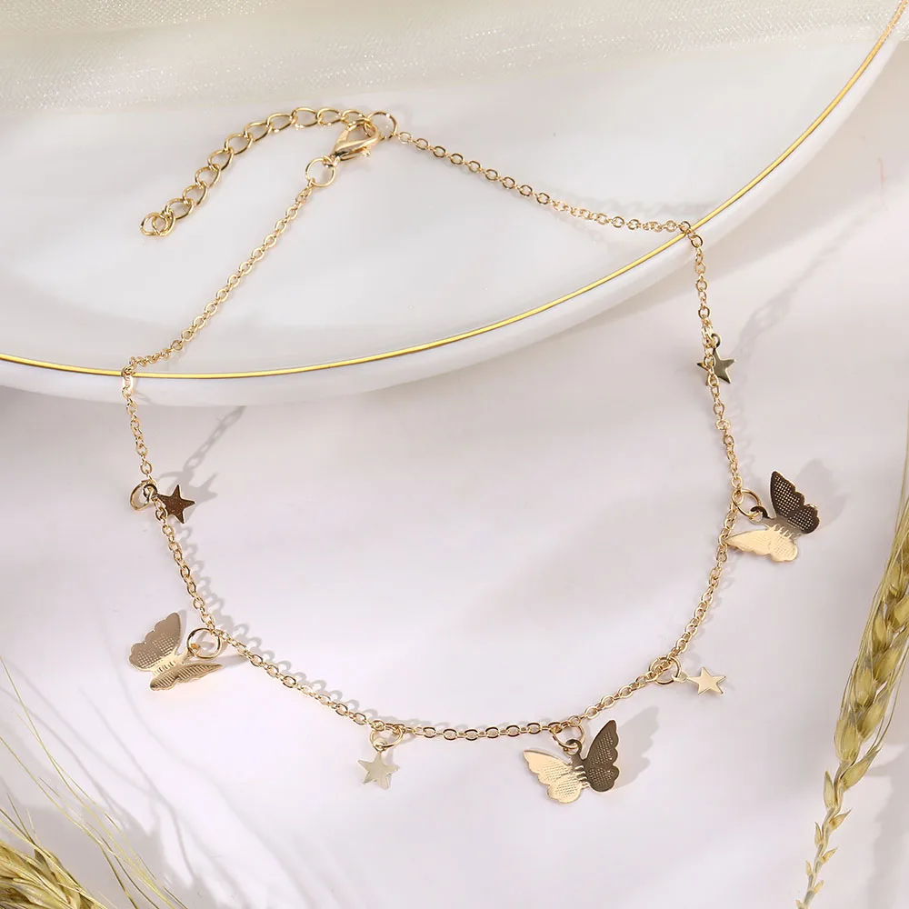 Женский чокер золотистого цвета, ожерелье с бабочкой для женщин, це...