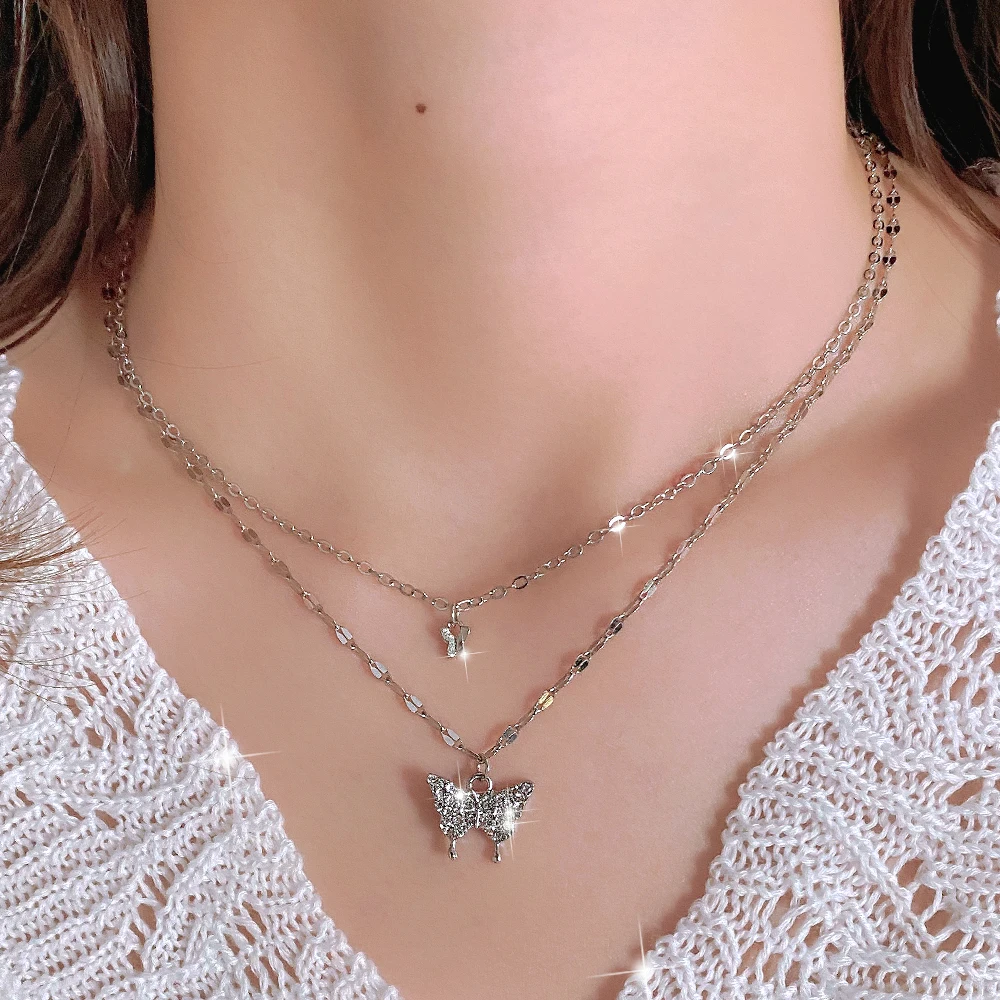 Новое блестящее Двухслойное ожерелье с бабочкой женское изысканное Двухслойное ожерелье на цепочке до ключиц ювелирные изделия для женщин подарок
