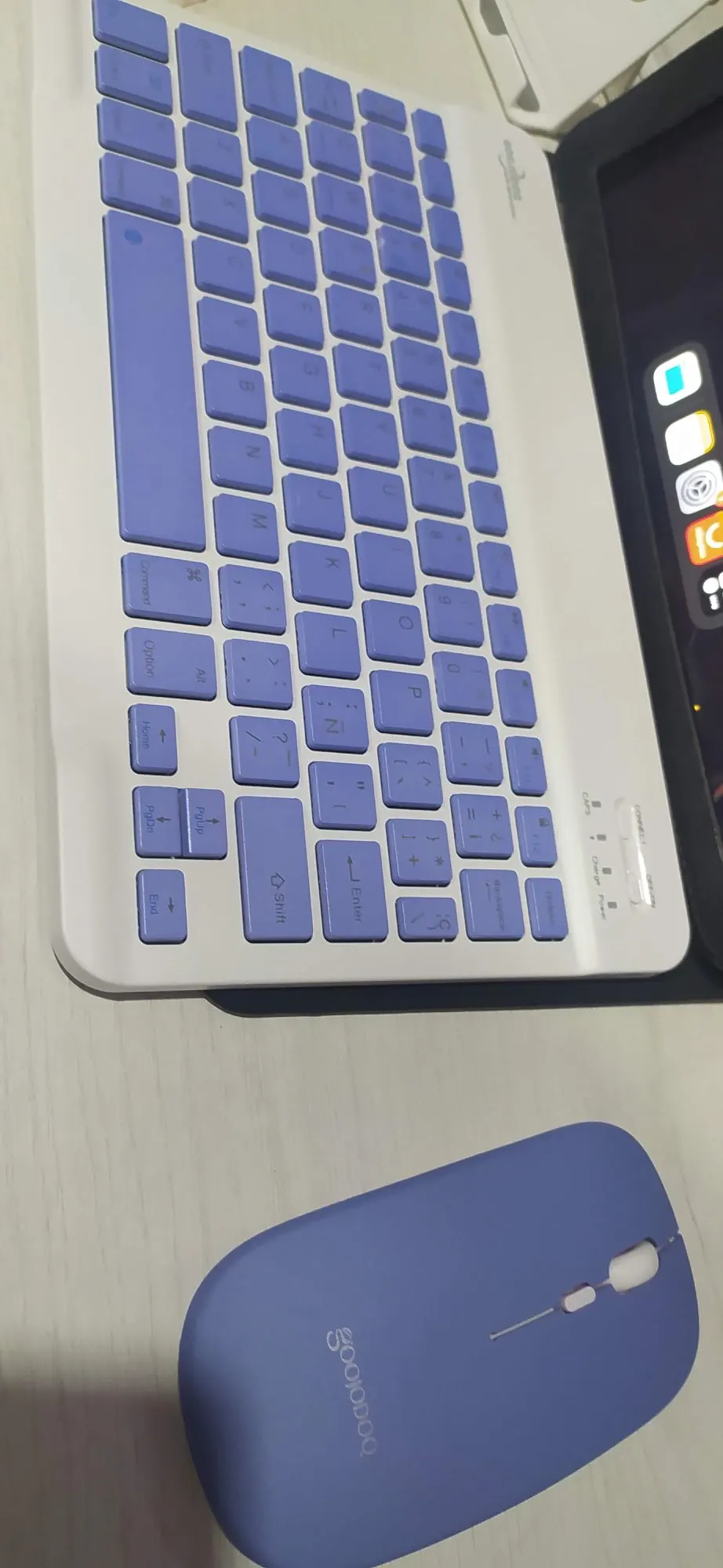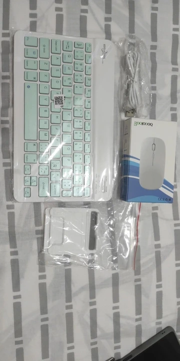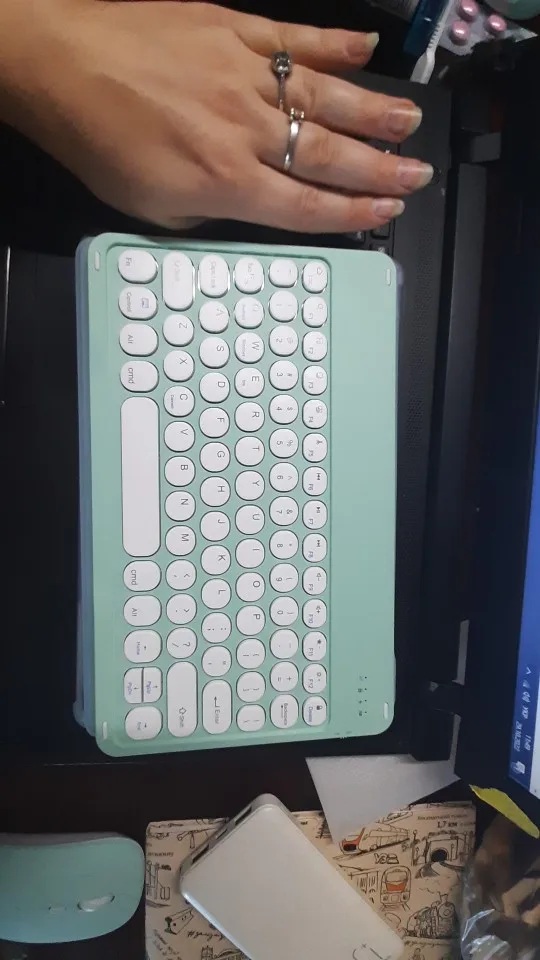 Супер быстрая доставка, мышь имеет usb и Bluetooth. Клавиатура Очень, очень тонкая и имеет металлическое покрытие под ней, которое прилипает к чехлам магнитом. Сначала кажется немного мягким, но пишет очень хорошо.
