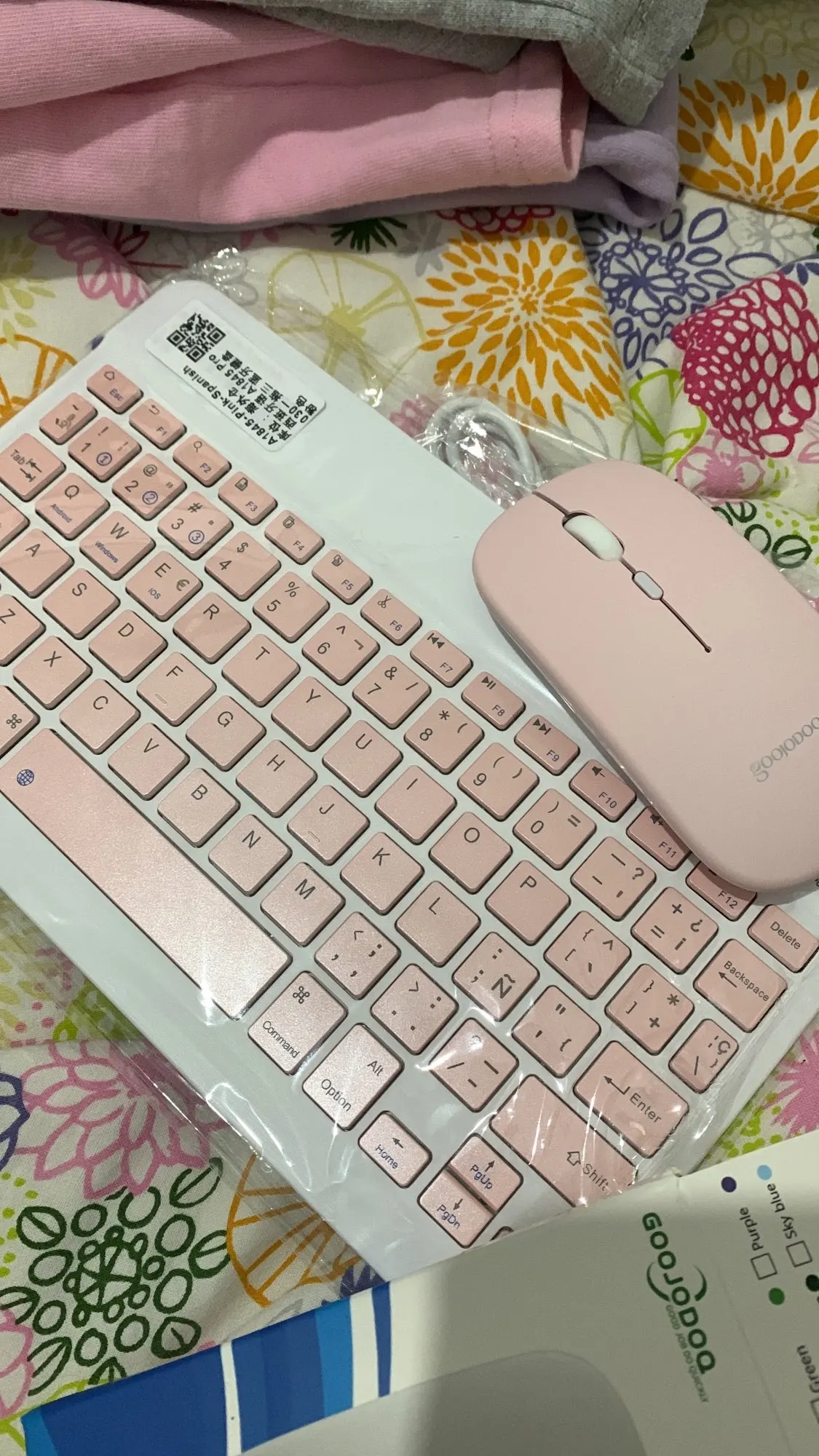 Product As described, it's wonderful. Я заказал его для моего iPad 2018 (6-го поколения/A1893), и он идет отлично. И клавиатура, и мышь очень удобны, легки, идеального размера для транспортировки, если это необходимо. Цвет не такой четкий, как вы видите на фотографиях продавца, но это меня не беспокоит, это красивый фиолетовый. При заказе на испанском языке включает в себя «ñ». Они легко подключаются к контактам Bluetooth. Пакет состоит из: клавиатуры, мыши, соответствующих зарядных устройств, инструкций и поддержки устройства, которое вы используете в качестве экрана. Не нужно было связываться с продавцом. Я не нашел ни одного недостатка, ни недостатка. Fast delivery, arrived literally in 2 days to MALAGA. Очень доволен своим заказом. Супер рекомендуется