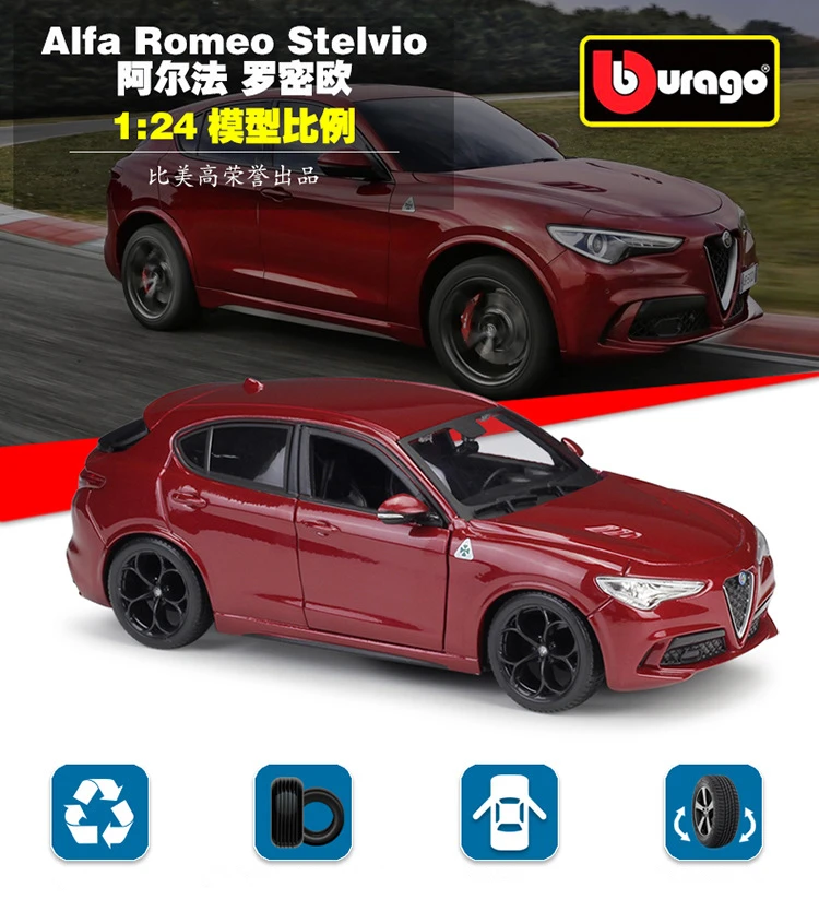 Модель автомобиля Alfa Romeo Stelvio SUV в масштабе 1:24, модель литая металлическая модель автомобиля, Коллекционная модель автомобиля, подарок для детей