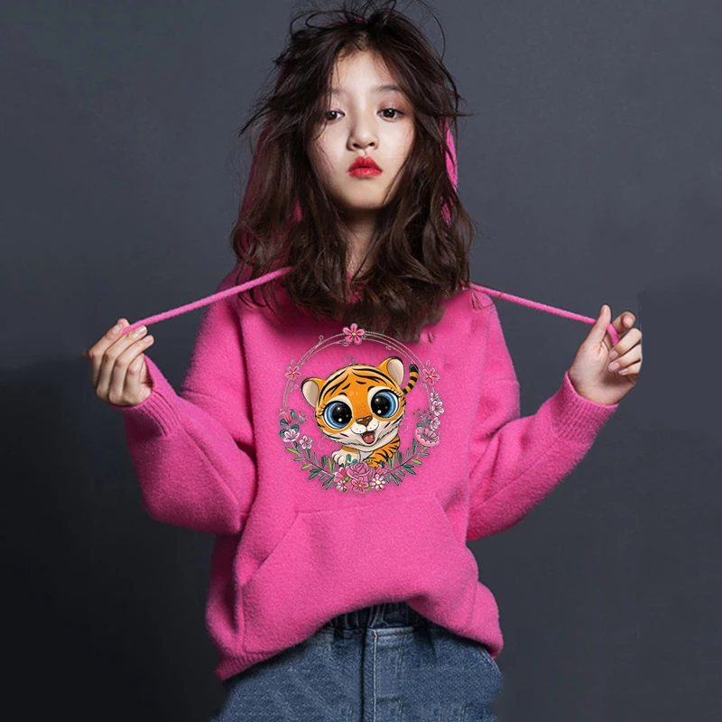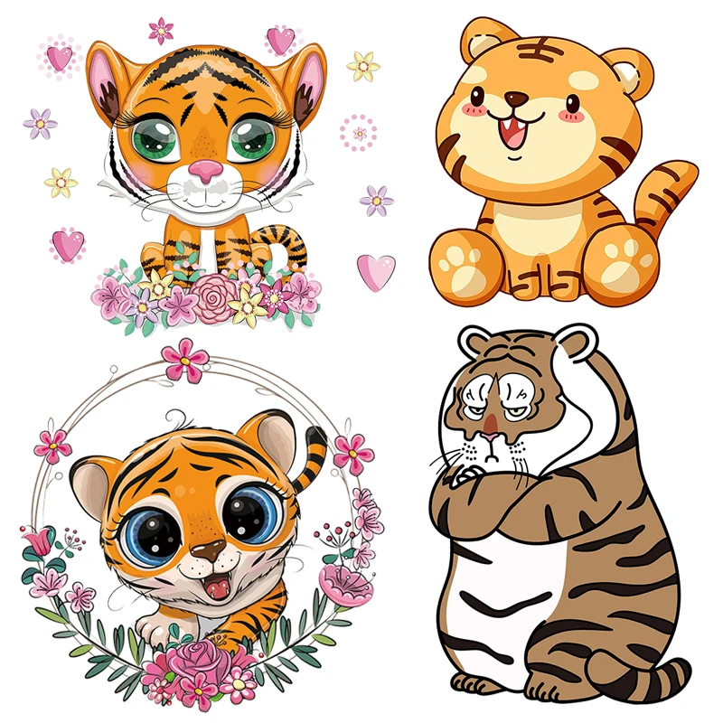 Симпатичный патч с тигром и цветком, термонаклейки для детской одежды, аппликация с мультяшными животными, термотрансферные наклейки для одежды