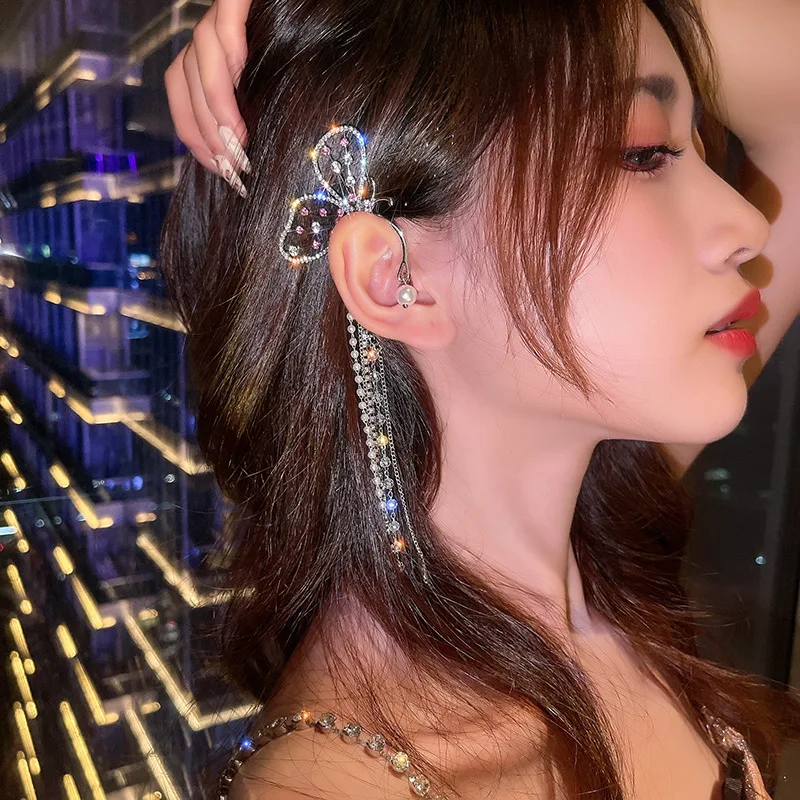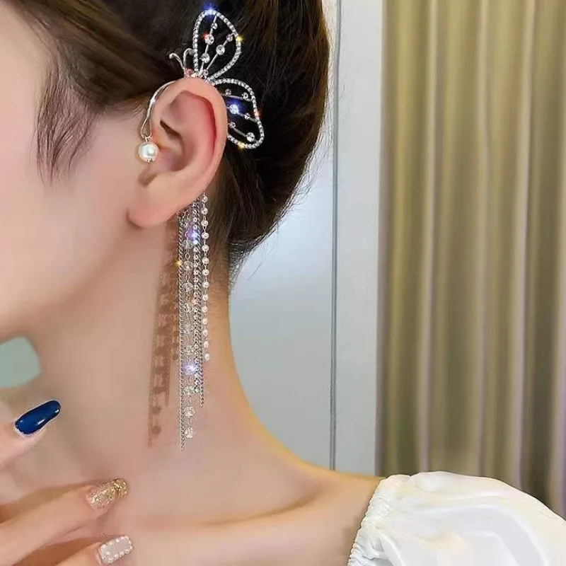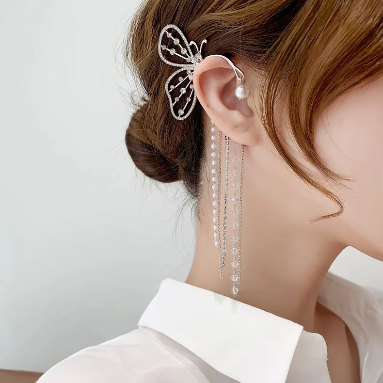 Модные серьги-клипсы с кристаллами в виде бабочки, жемчужные бусины...