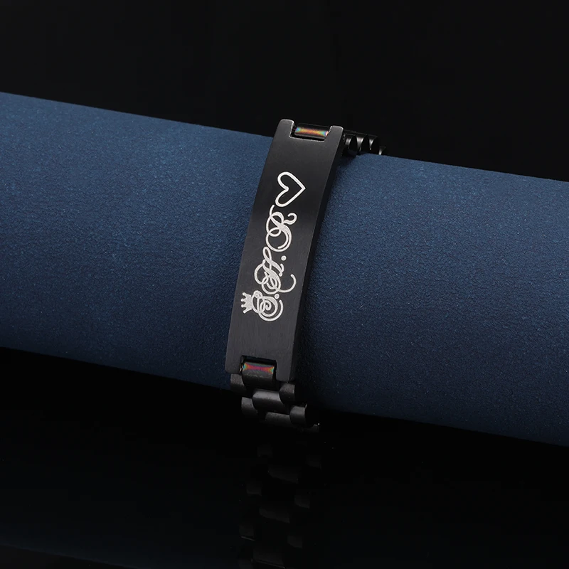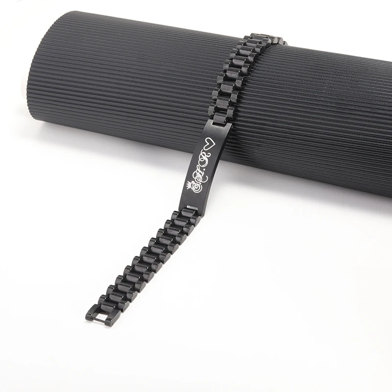 Индивидуальный именной браслет для женщин из нержавеющей стали черный пистолет Цвет титановый браслет ювелирные изделия подарок на день Святого Валентина