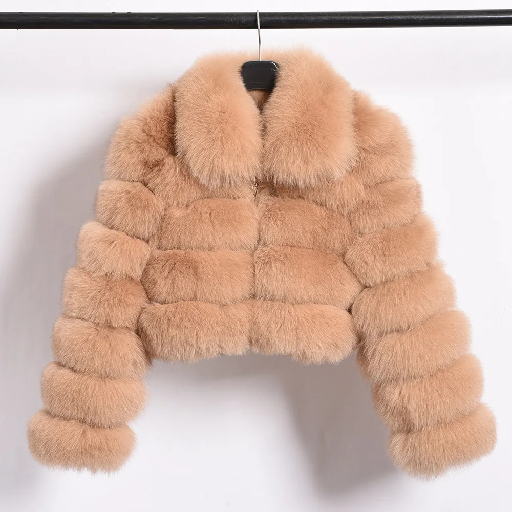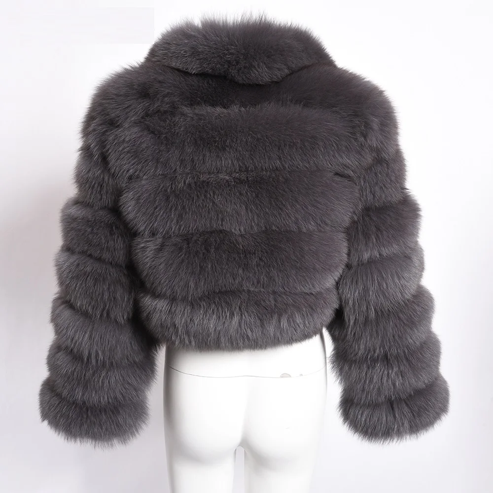 Женская шуба из натурального Лисьего меха, толстое короткое пальто с длинным рукавом, мягкая теплая верхняя одежда для зимы