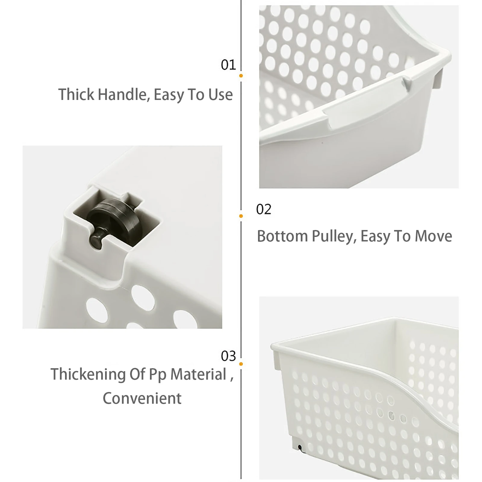 Характеристика:1. Легко тянуть: корзина для хранения разработана с ручкой, которая удобна и экономична для переноски вещей. Корзины для хранения сохранят ваше пространство в порядке.2. С позицией этикетки: автономный дизайн этикетки удобен для классификации, и элементы ясны с первого взгляда. Этикетка должна быть подготовлена самостоятельно.3. Уникальный дизайн: все наши органайзеры для шкафов вентилируются и полы, что способствует вентиляции. Вы можете легко увидеть товары в корзине. ТРАПЕЦИЕВИДНОЕ отверстие для легкого доступа позволяет вам более эффективно работать по дому.4. Несущая нагрузка: есть конструкция шкива в нижней части корзины для хранения, которая может быть вытянута, мягко поднимая передний конец, не натыкаясь. Это отличный органайзер для хранения мелких инструментов и деталей для рукоделия.5. Многоцелевое использование: Наши корзины для хранения могут широко использоваться в домах, офисах, кухнях или комнатах для хранения продуктов, закусок, картофельных чипсов, консервов, книг, документов, одежда, принадлежности для ванной, гаджеты, хобби и рукоделие. Наша корзина поможет вам упростить вашу повседневную жизнь.