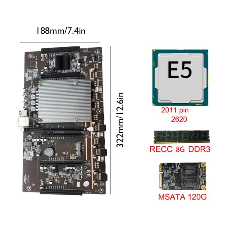 Материнская плата для майнинга BTC X79, Xeon Combo 5 PCIe PCI-E Express 3,0 X8 Слоты памяти DDR3, поддержка графической видеокарты 3060 GPU
