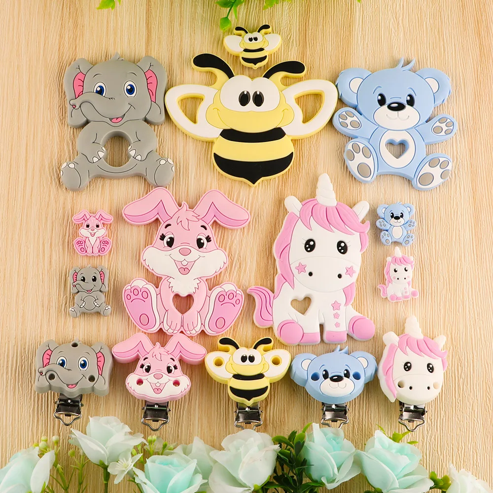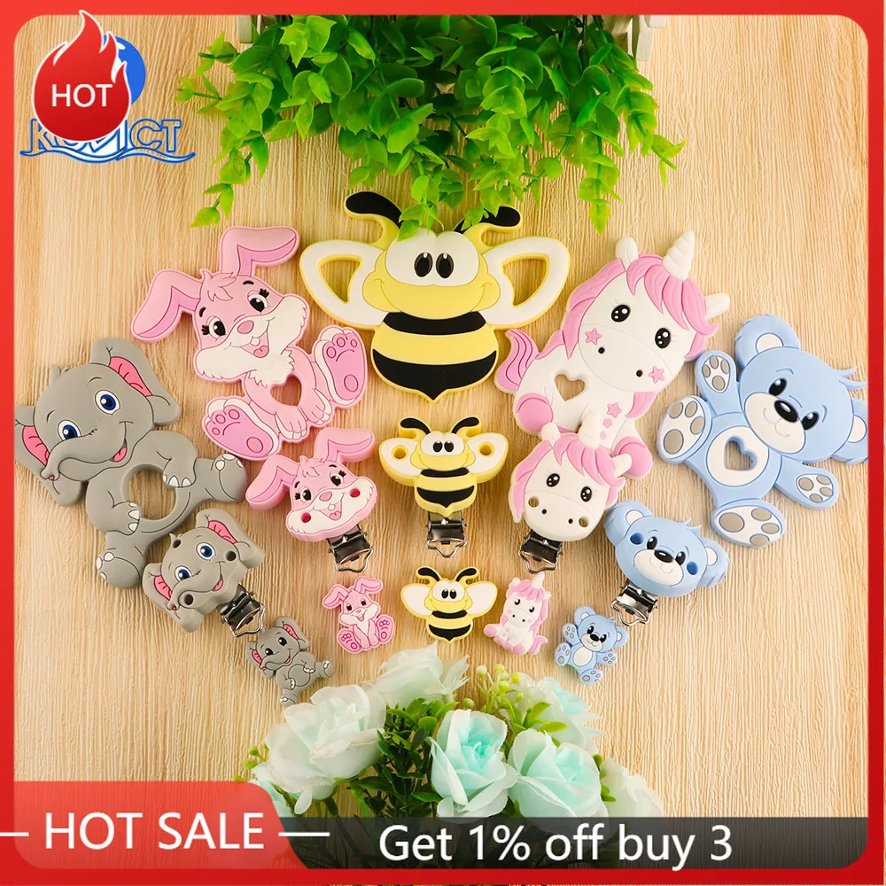 Kovict животные силиконовые прорезыватель бусины клипсы DIY соска, зажимы для цепи для ребенка прорезыватель бусины ювелирные изделия кулон Детские молярные игрушки