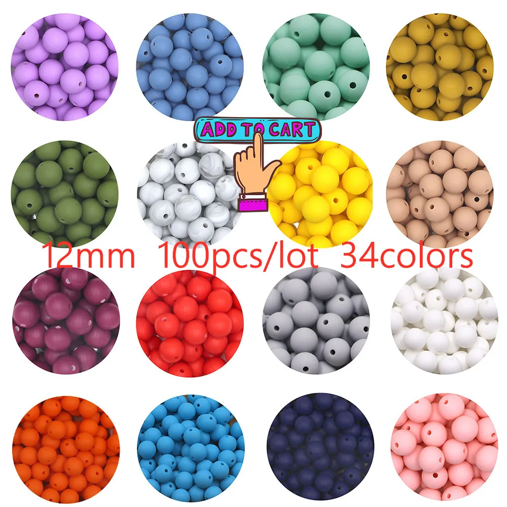100 шт., силиконовые бусины для прорезывателя для зубов, 12 мм