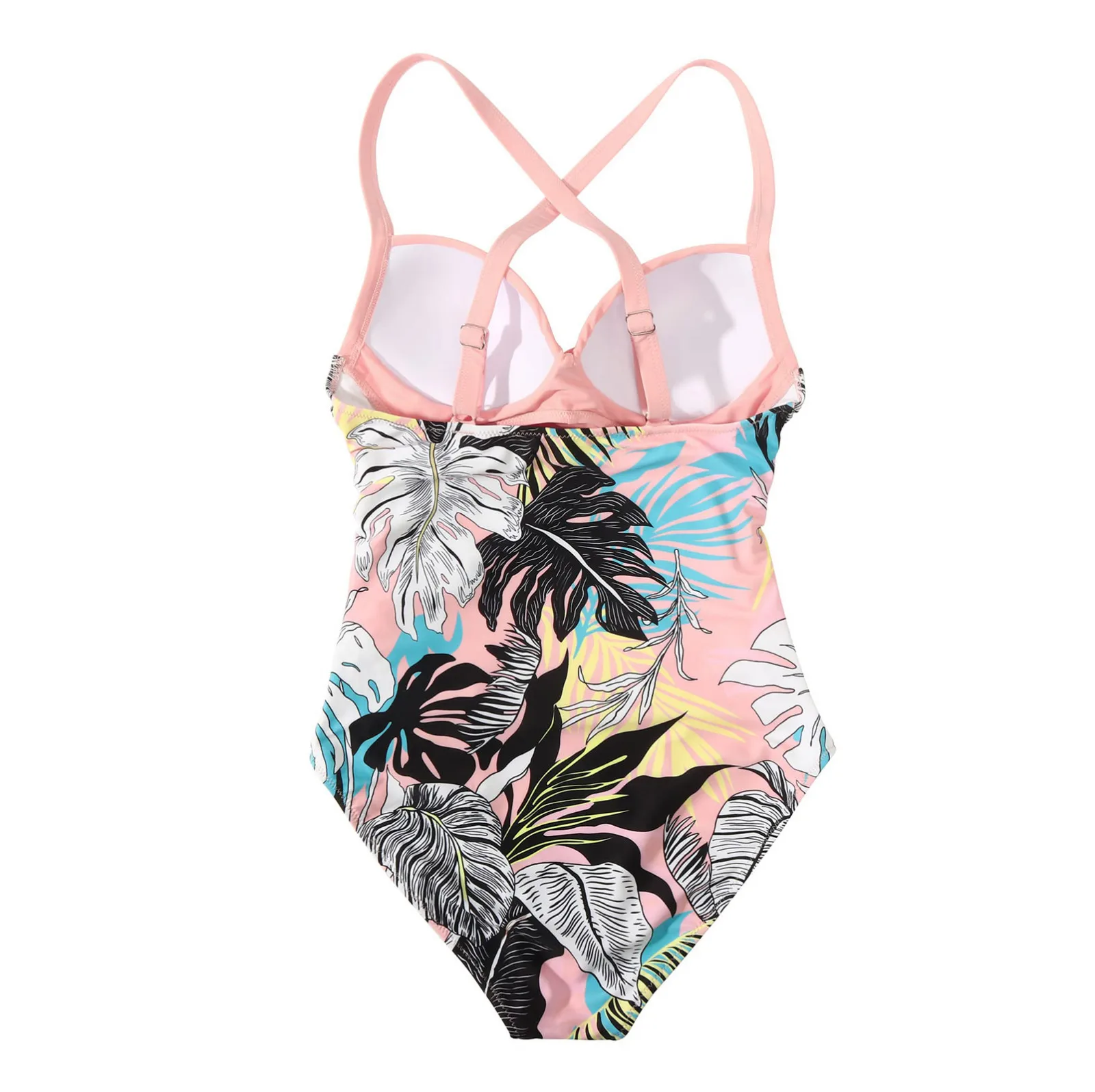 Бикини, новинка 2022, купальник, женский слитный купальник с принтом и вырезом на спине, купальный костюм с перекрестными лямками на животе, бикини, пляжная одежда