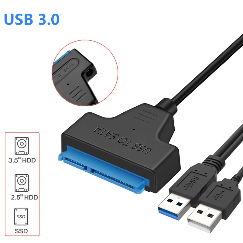 Кабель USB 3,0 к Sata с адаптером питания, Поддержка 2,5 3,5 дюйма, внешний SSD HDD жесткий диск, 22 Pin USB 2,0 Sata III к usb