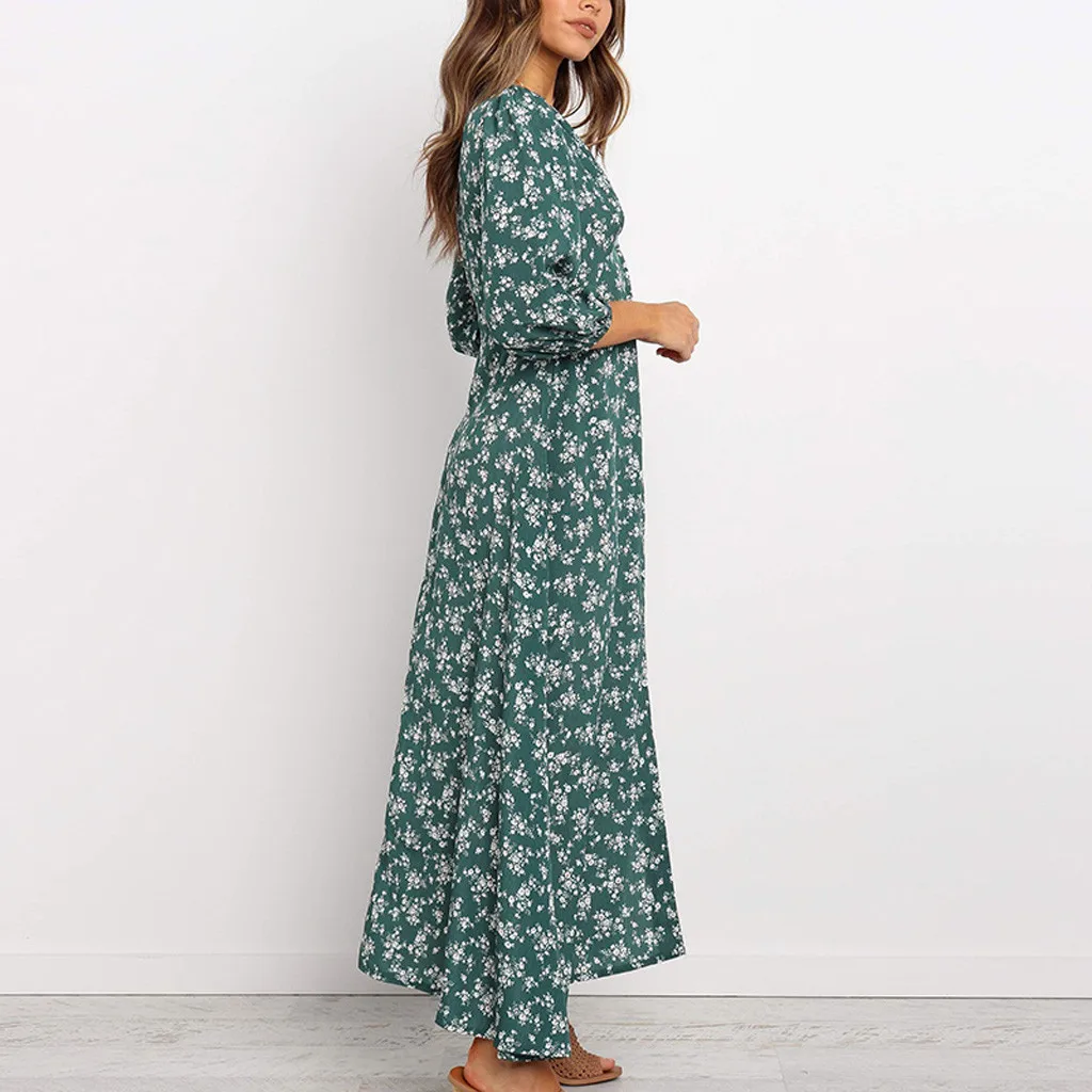 Модное женское длинное платье с v-образным вырезом и рукавом три четверти с цветочным принтом