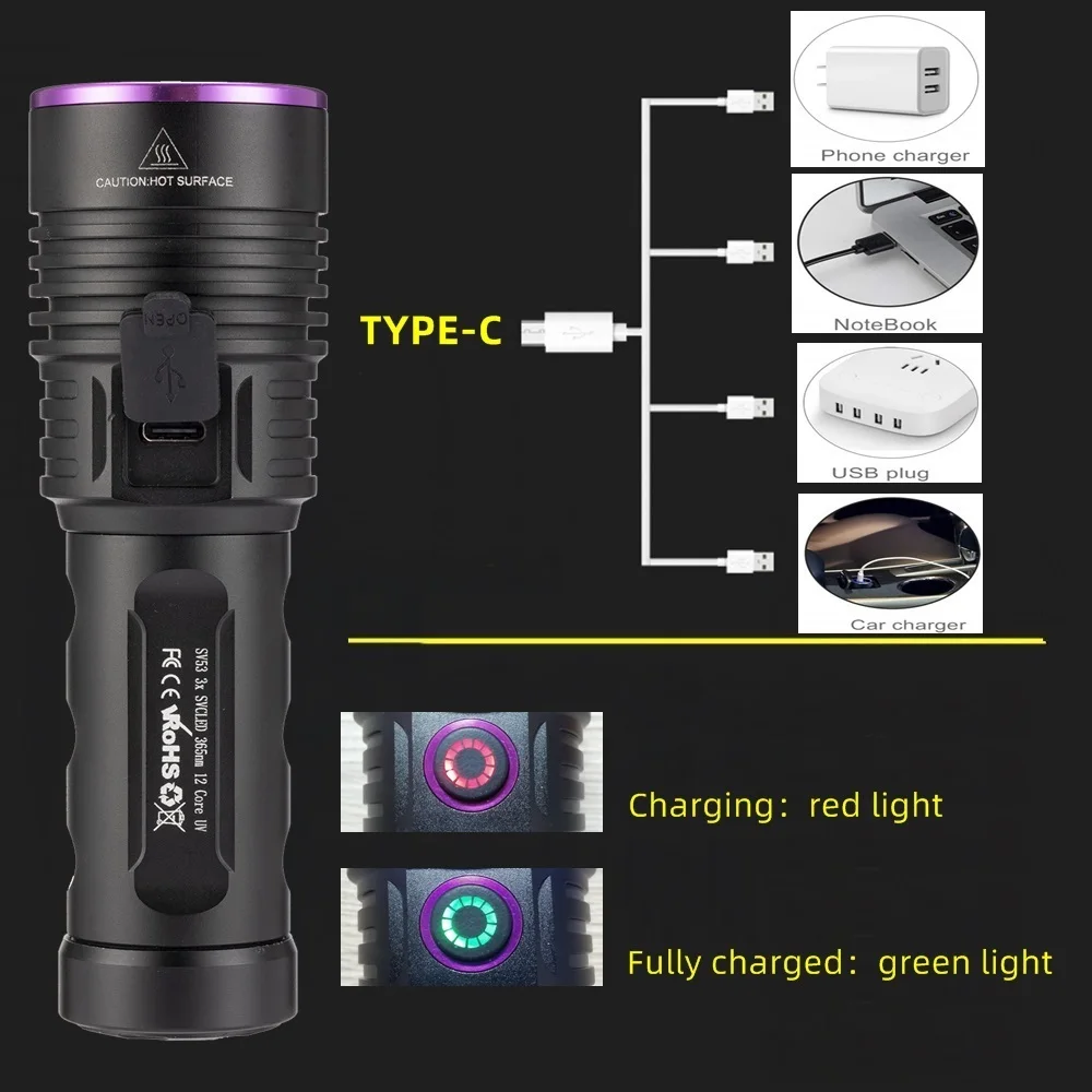 Ультрафиолетовый черный фонарь Alonefire SV53 45 Вт 365, УФ-фонарик, черный портативный фонарь для скорпионов, искусственная смола