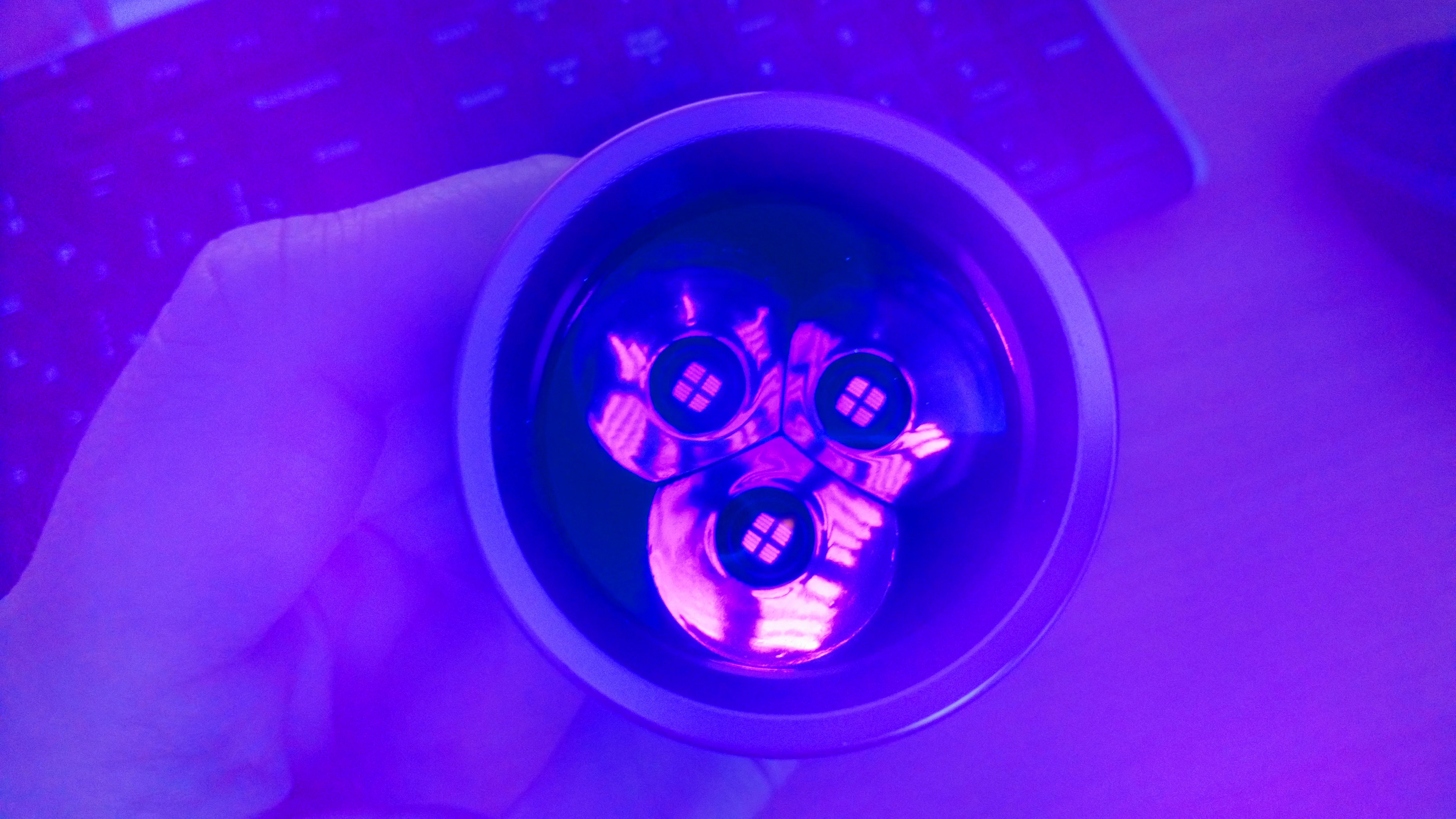 Хороший качественный фонарь. Светит действительно ярко, даже при дневном свете видно. Водяные знаки видны. Немного огорчило, что мой образец конечно не 45 ват как заявлено получился. Даже от лабораторного блока питания при напряжении 4.2в ток только 5 2а. т.е. мощность менее 25ватт получилась. При небольшом снижении напряжения ток начинает падать. При 3.7 уже всего 2.5 ампера, т.е. мощность еще меньше. В остальнов все отлично. Возможно это проблемы моего образца.