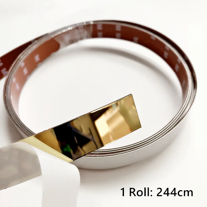 Самоклеящиеся плоские декоративные полосы из нержавеющей стали, 305 см