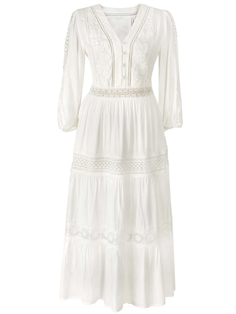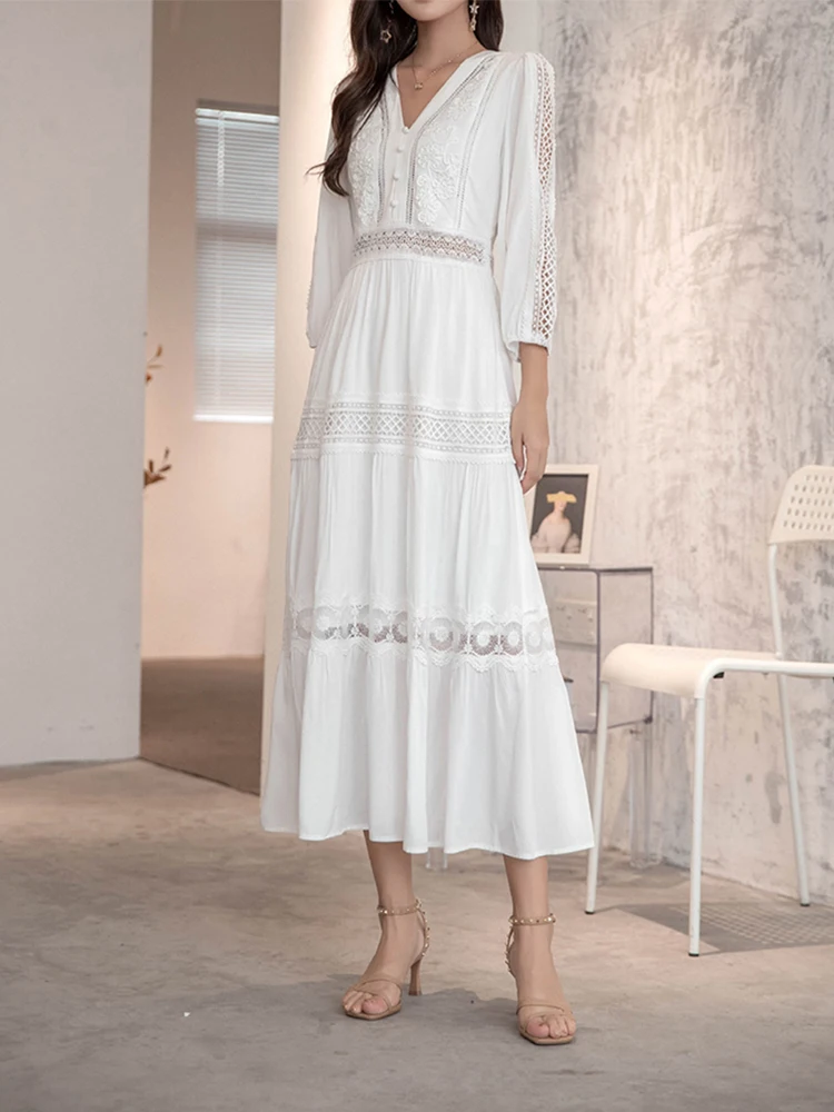2022 модное дизайнерское весеннее Повседневное платье для женщин, белое элегантное женское платье с вышивкой, высокое качество, модные праздничные вечерние платья