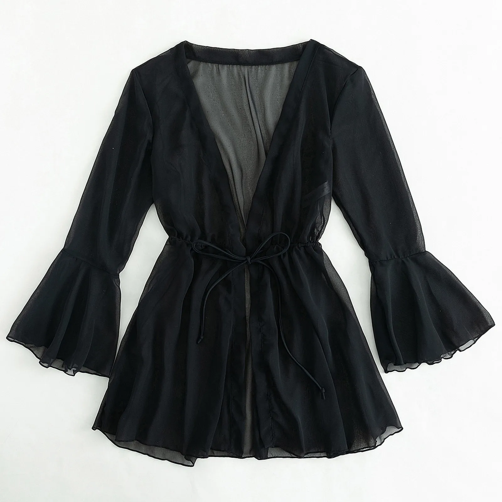 Женский купальник, накидки, кафтан с рукавами-мандаринами, Пляжная туника, платье, Пляжное однотонное черное парео, пляжные накидки